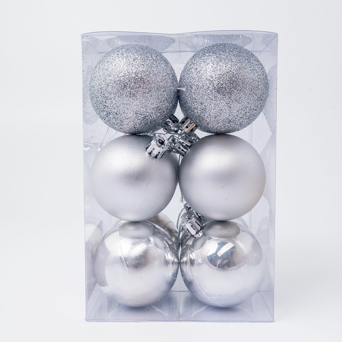Купить Елочные шары серебро (матовый, глянец, глиттер), размер 6 см, набор 12 штук