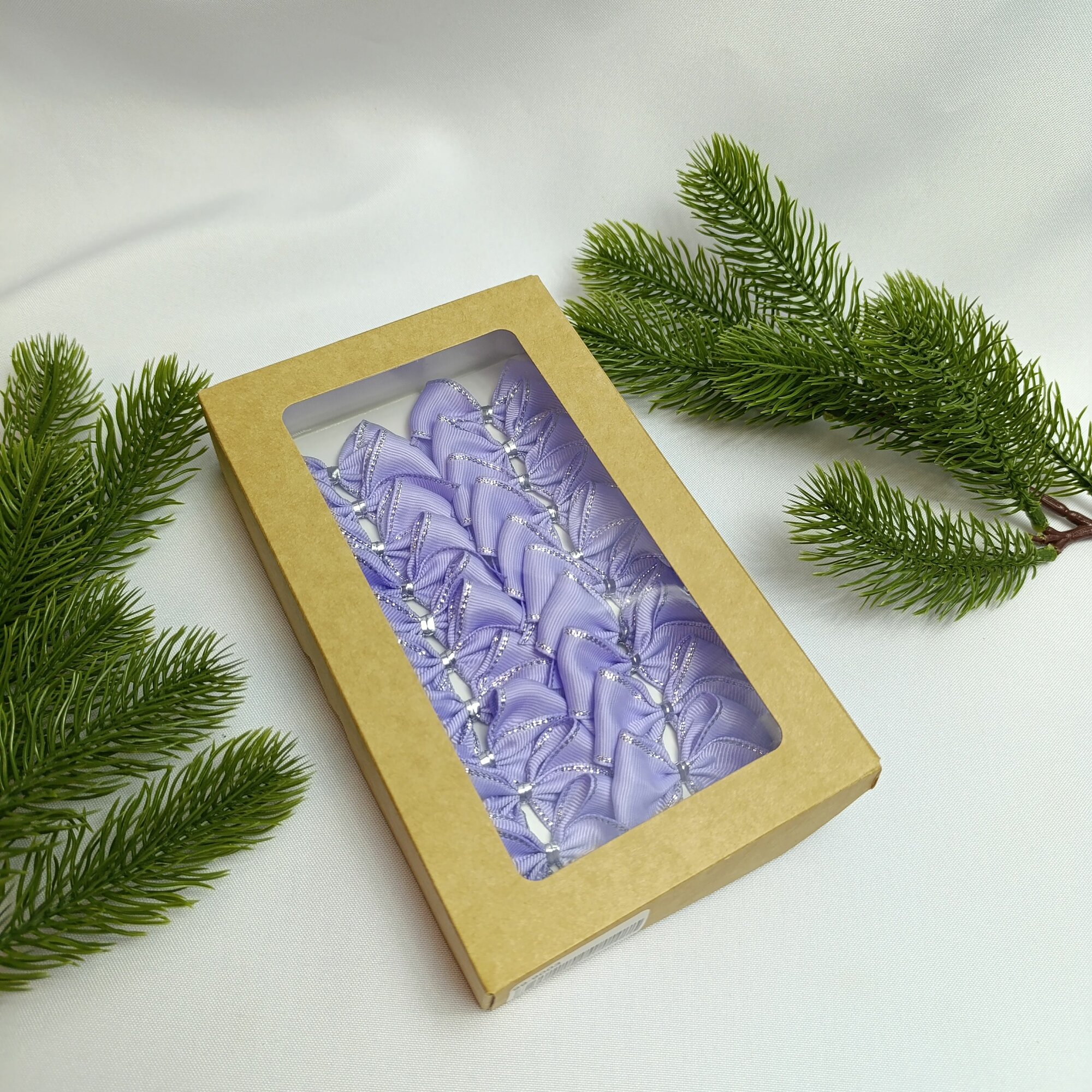 Купить Банты новогодние 20 шт, сиреневые репсовые с люрексом серебро, крепление твист
