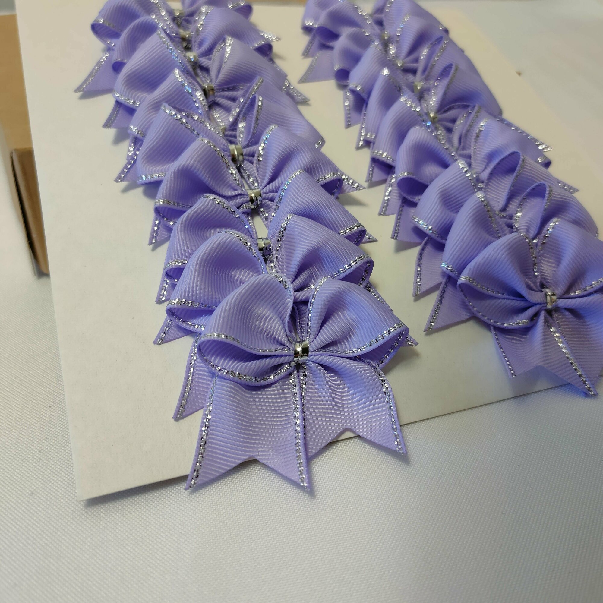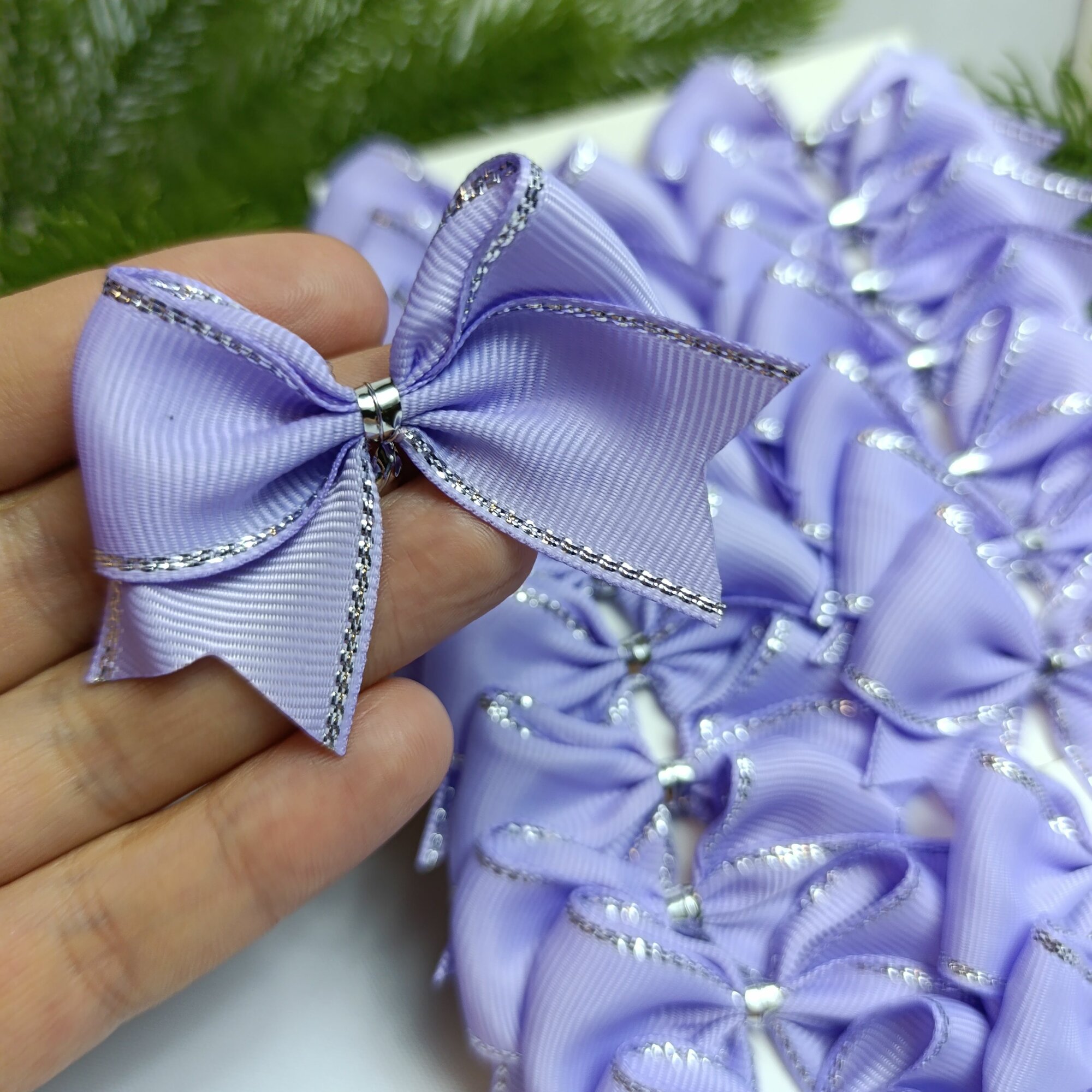 СохранитьБанты новогодние 20 шт, сиреневые репсовые с люрексом серебро, крепление твист интересное: