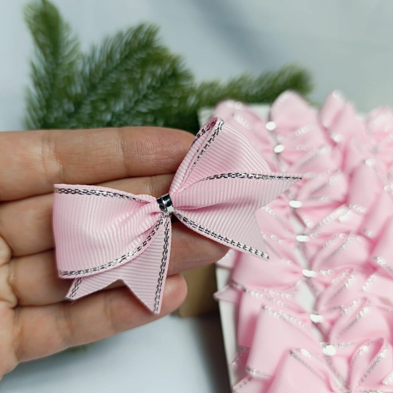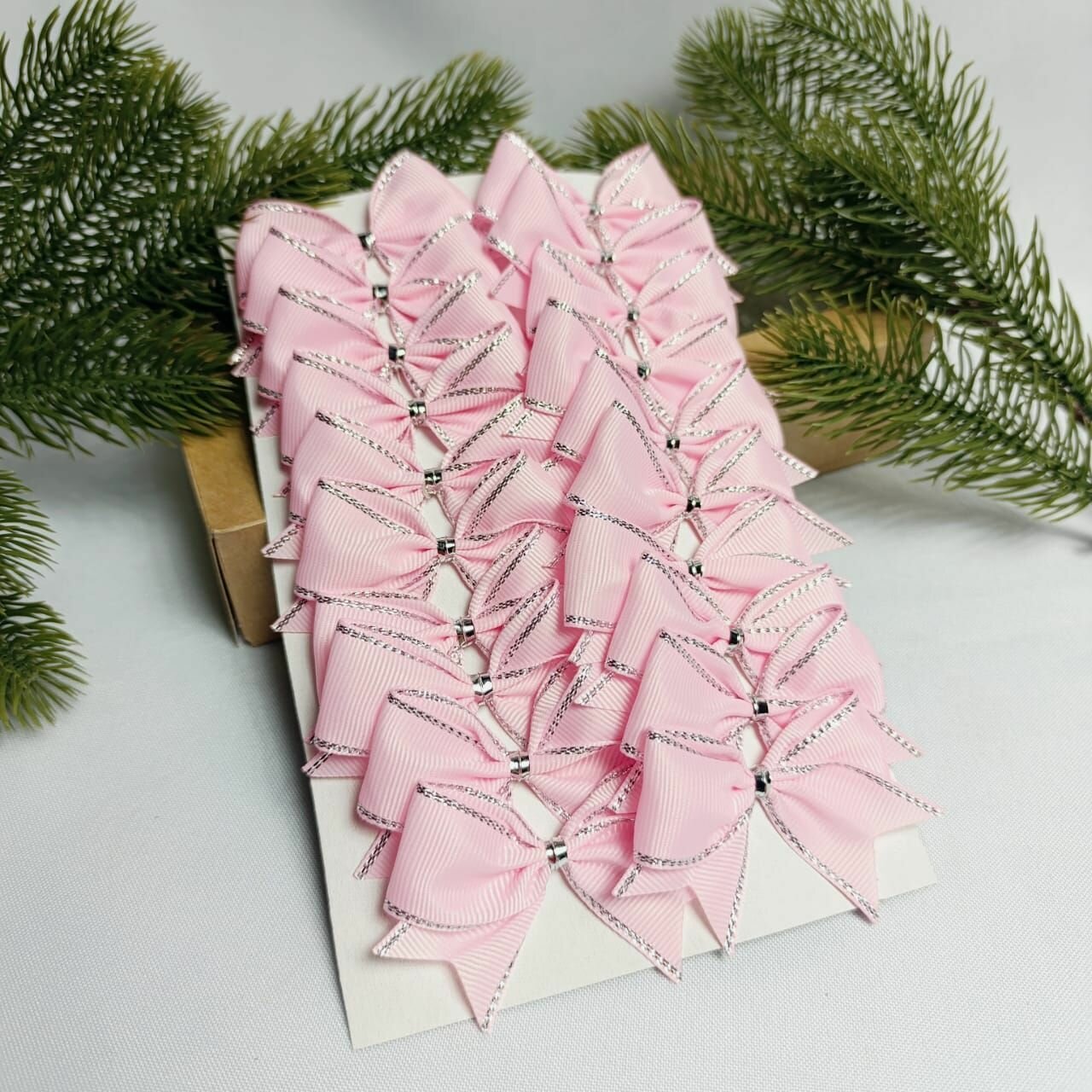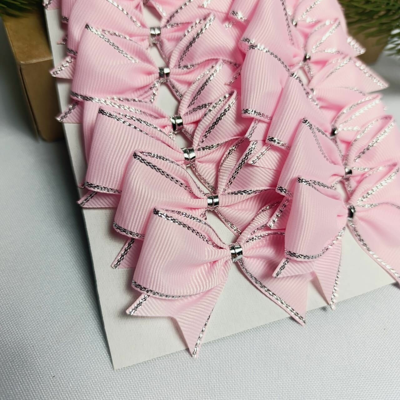 СохранитьБанты новогодние 20 шт, репсовые с люрексом, розовые с серебром, крепление твист интересное: