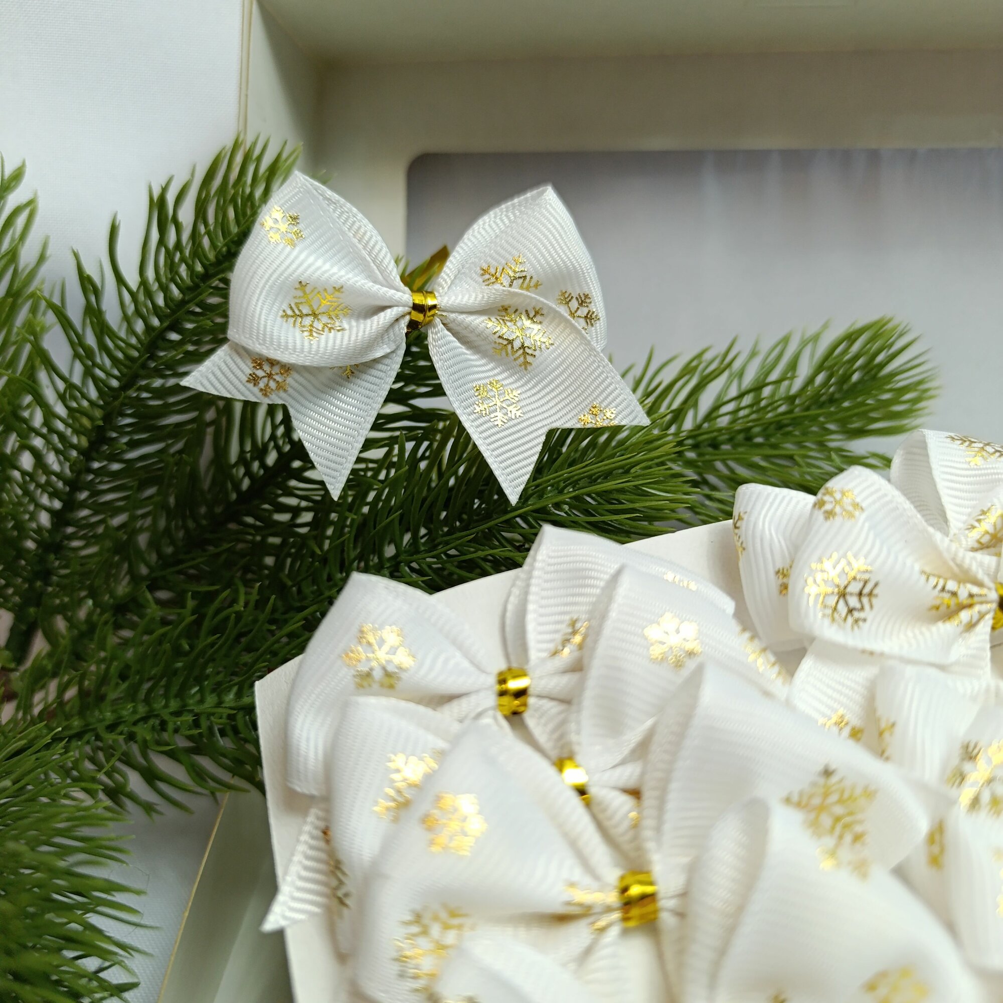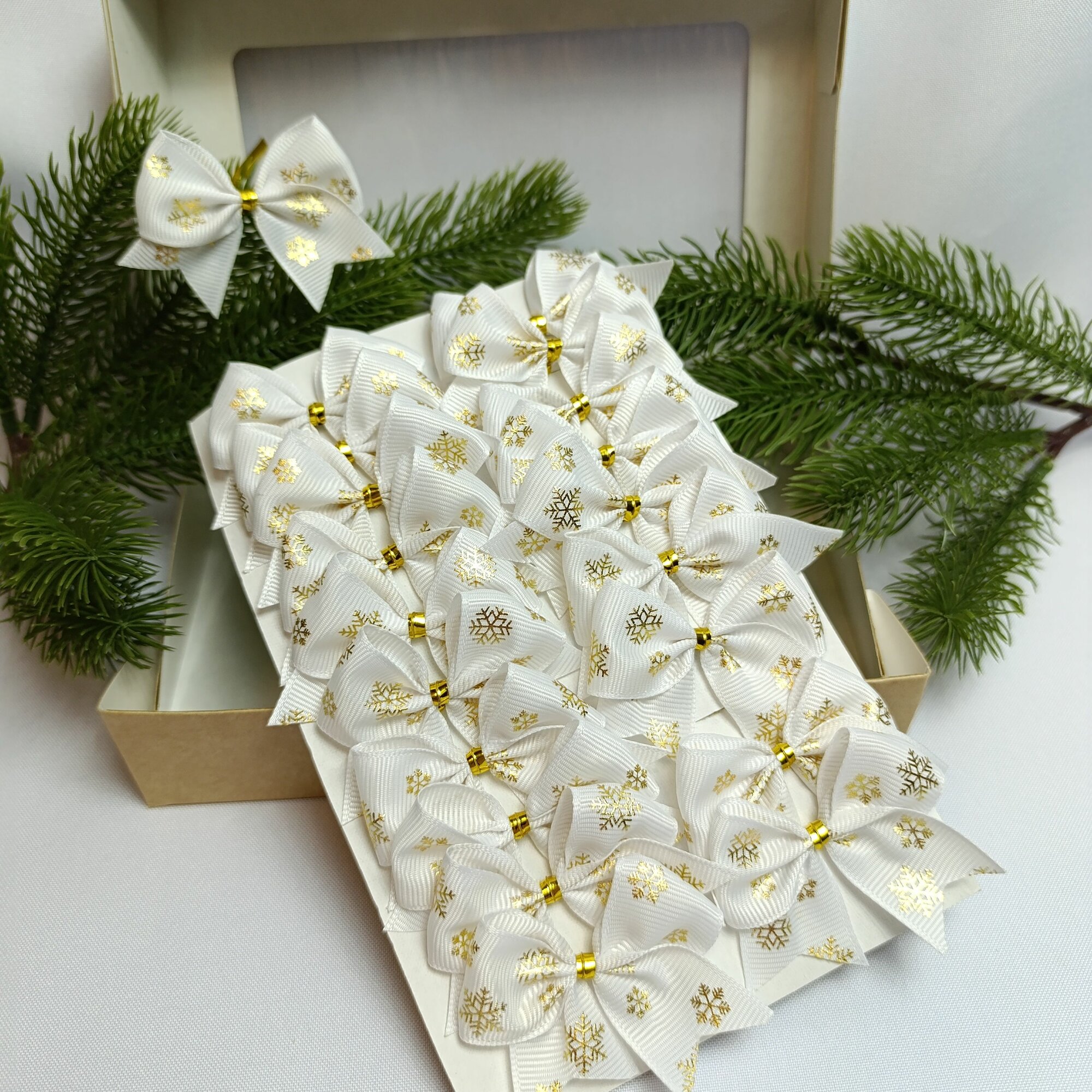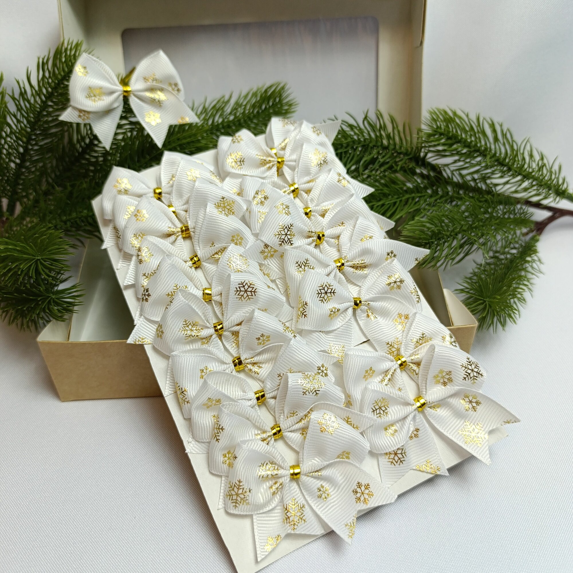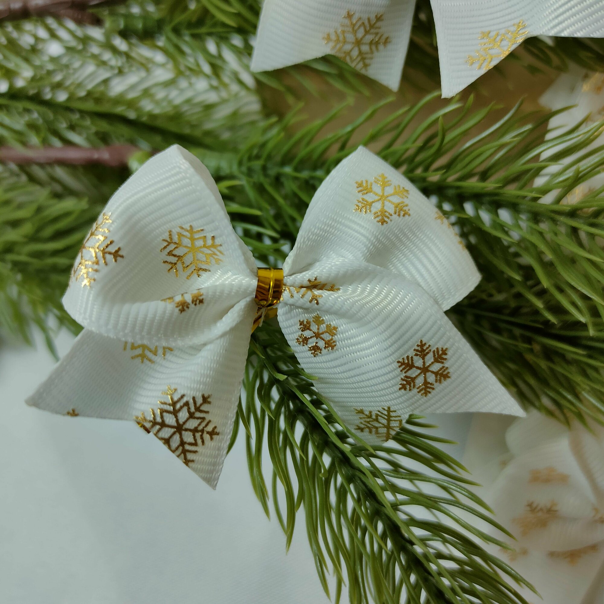СохранитьБанты новогодние 20 шт, репсовые белый со снежинками золото, крепление твист интересное: