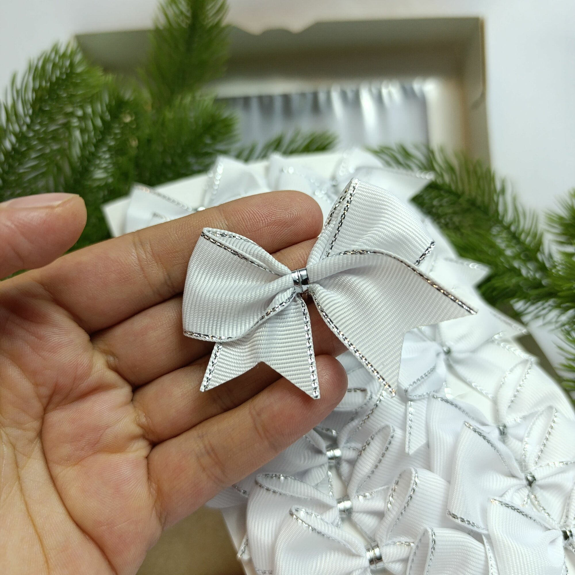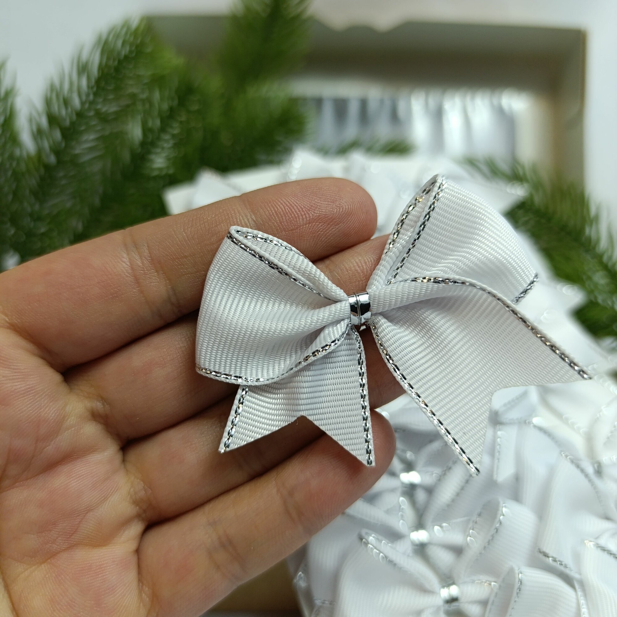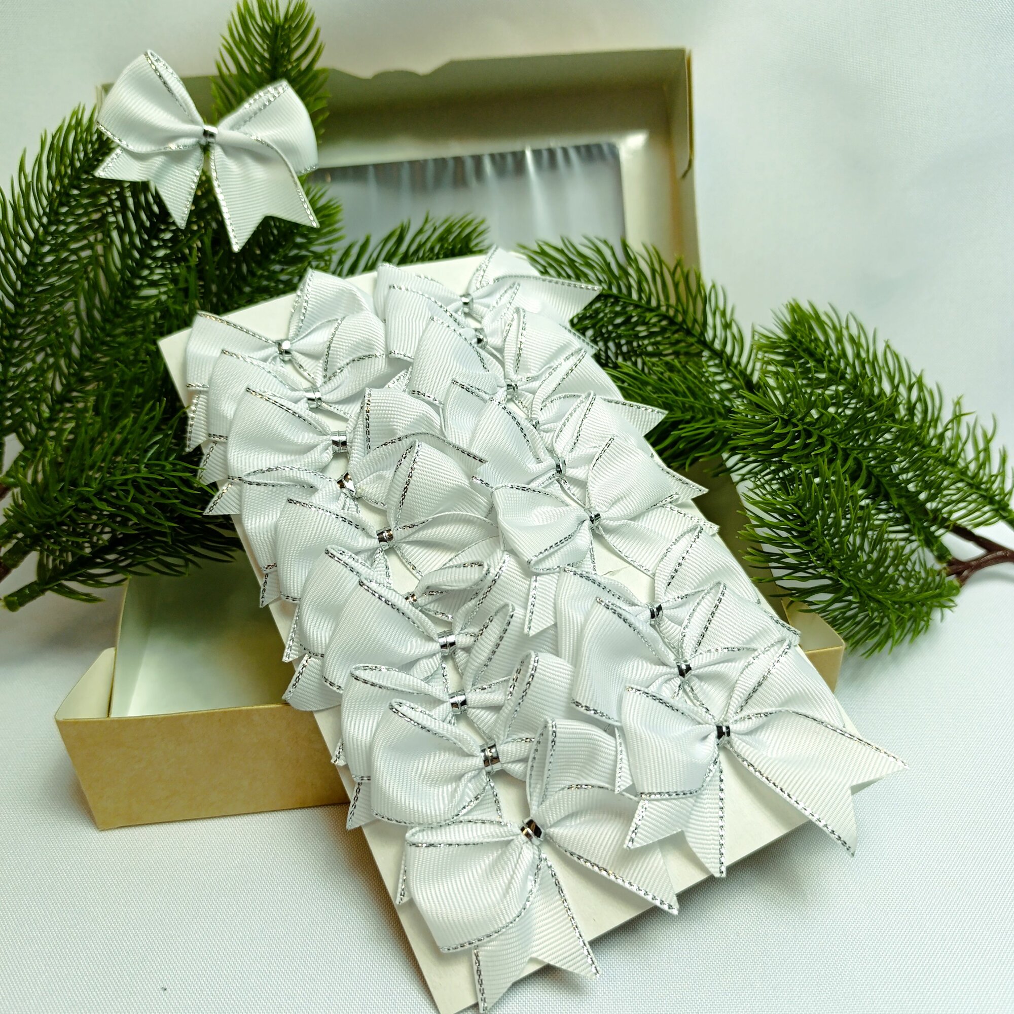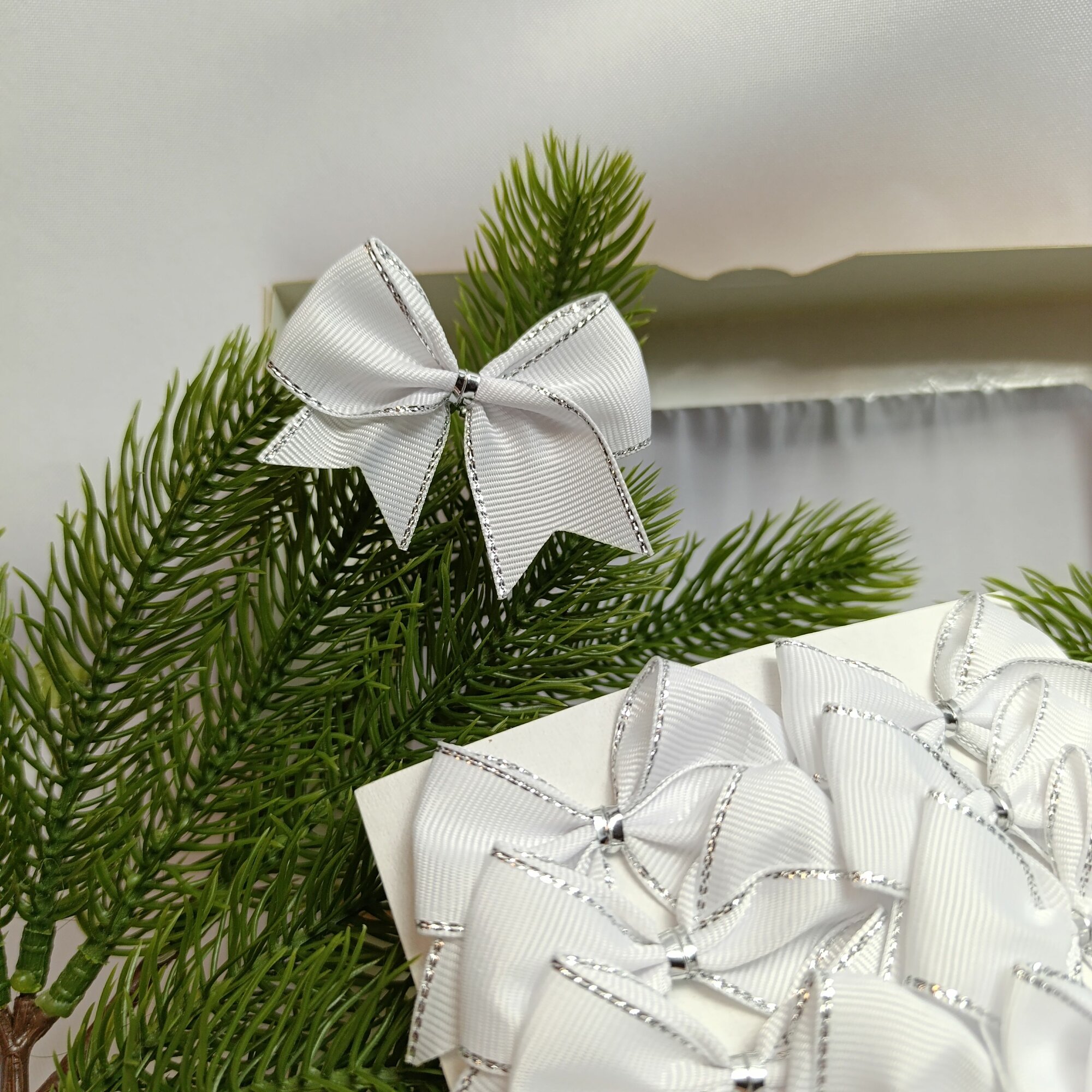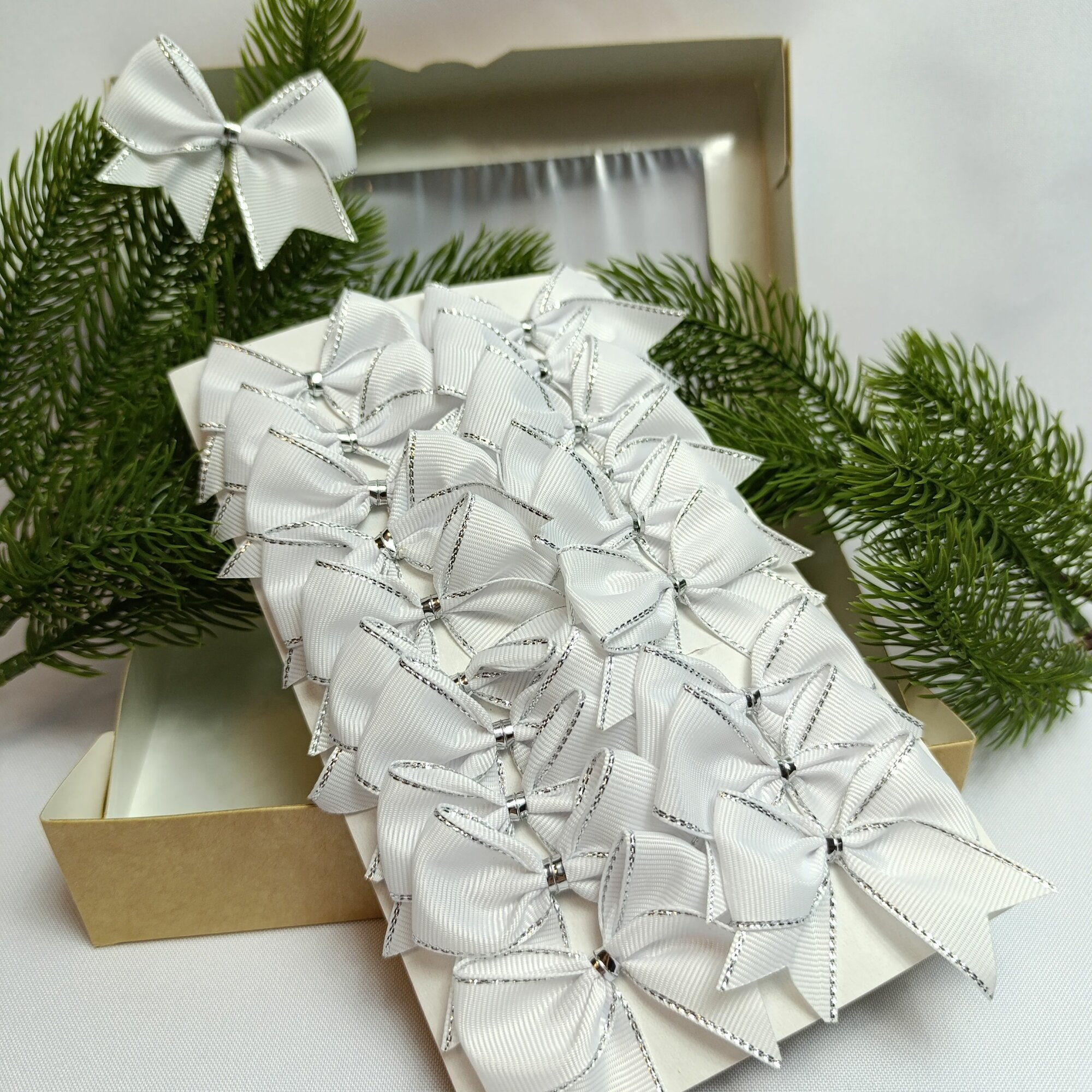 СохранитьБанты новогодние 20 шт, репсовые, в белом цвете с серебряным люрексом, крепление твист интересное: