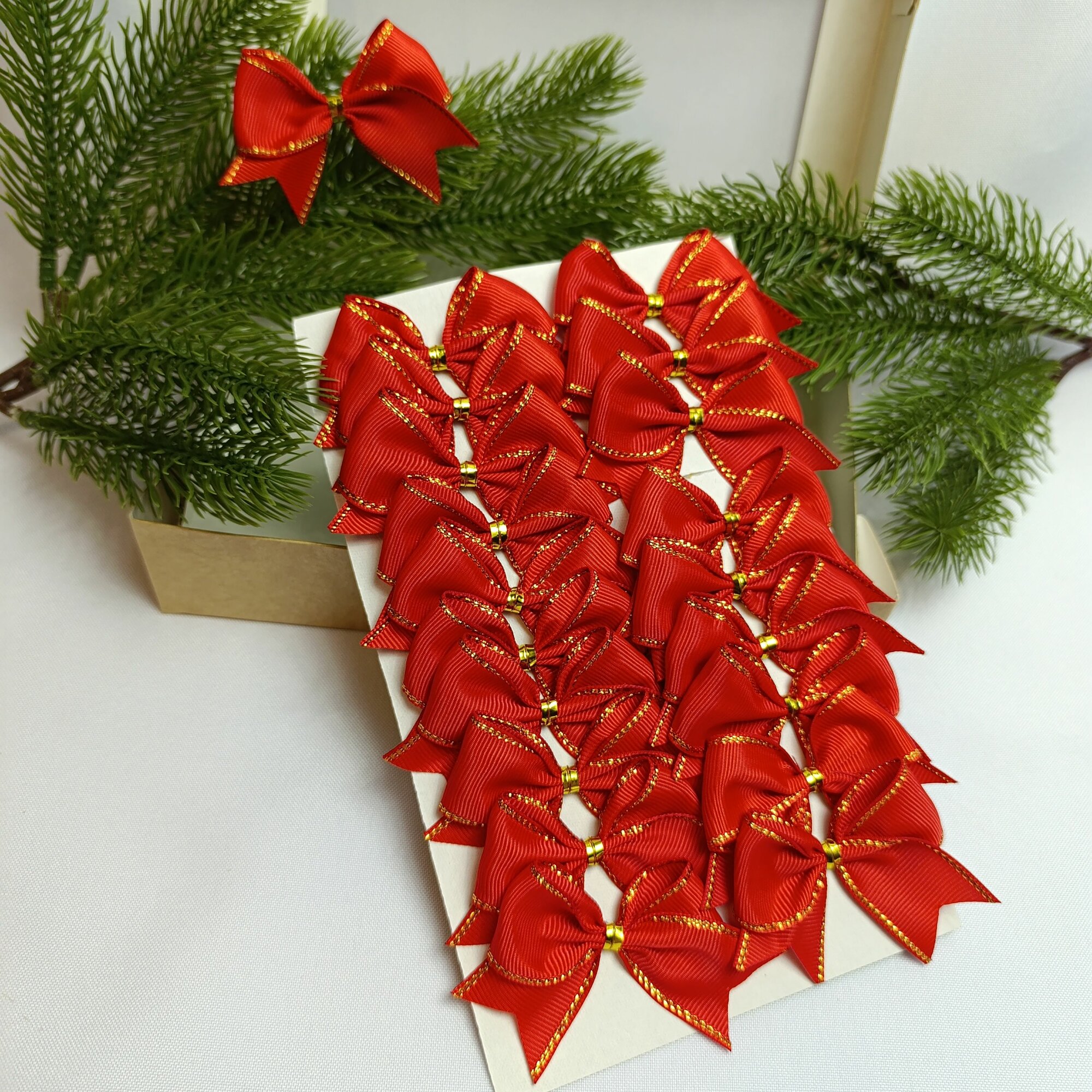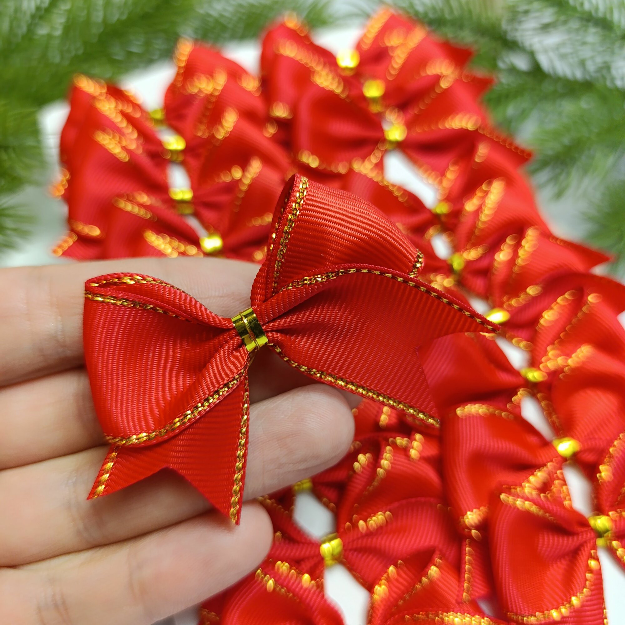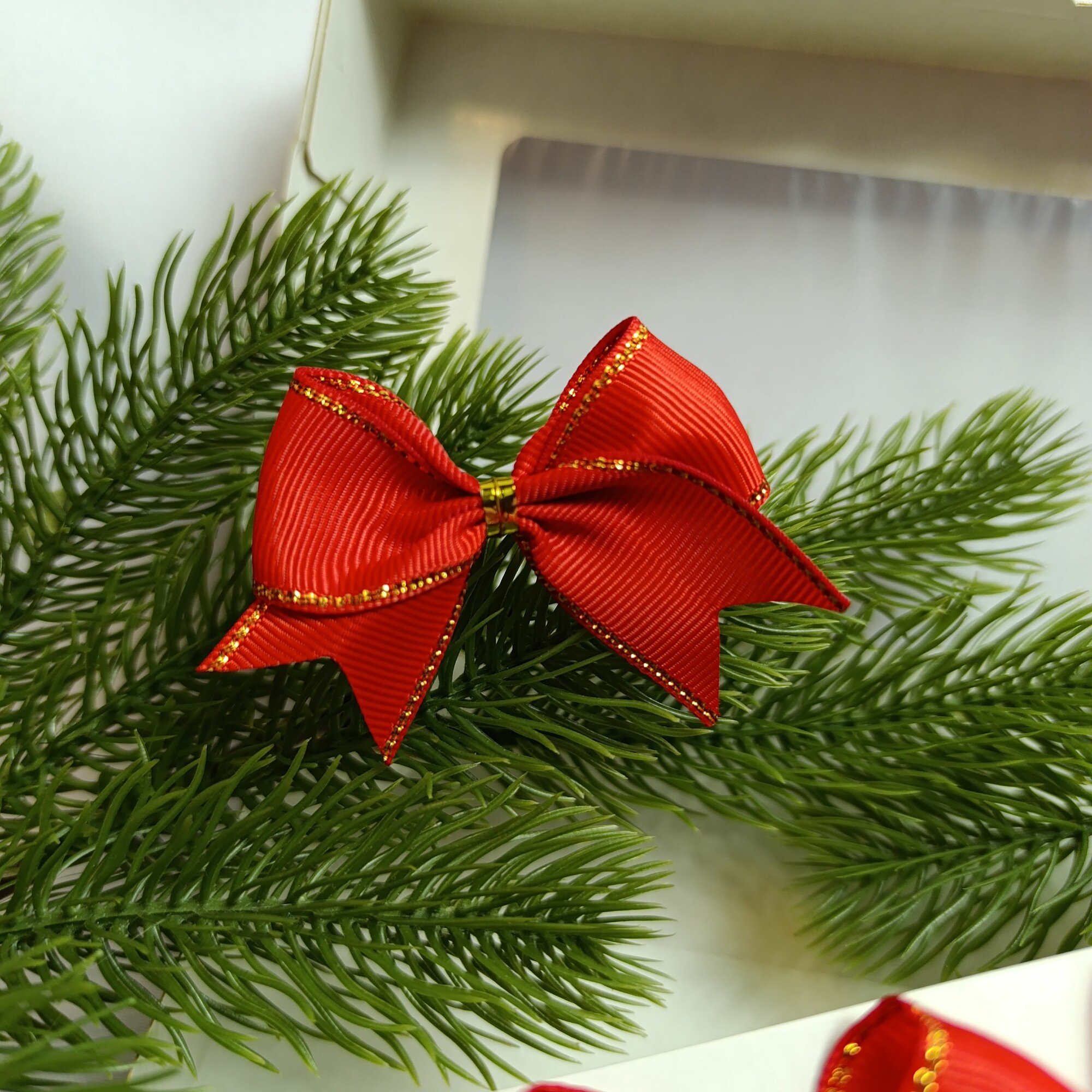 СохранитьБанты новогодние 20 шт, красные с золотым люрексом репсовые с люрексом, крепление твист интересное: