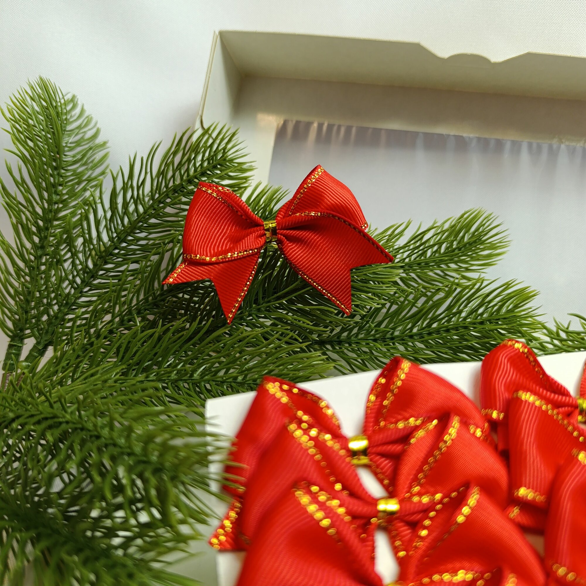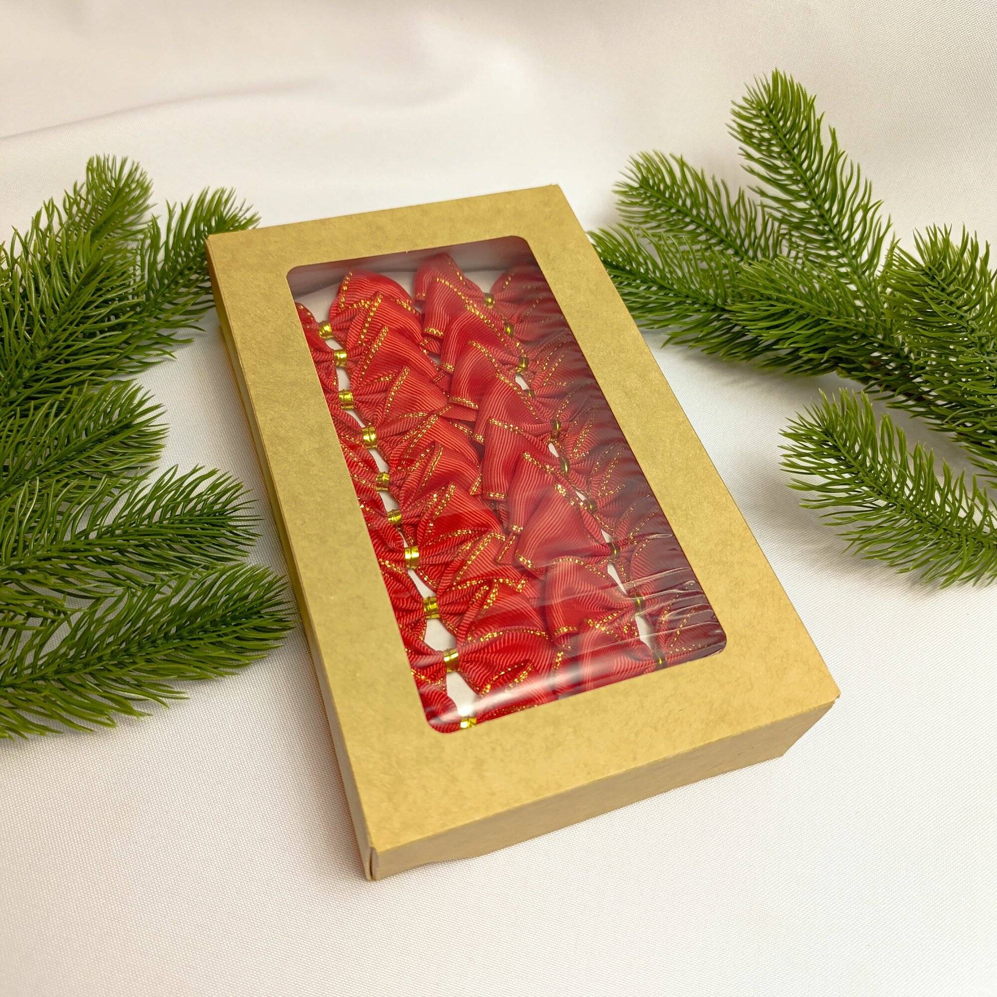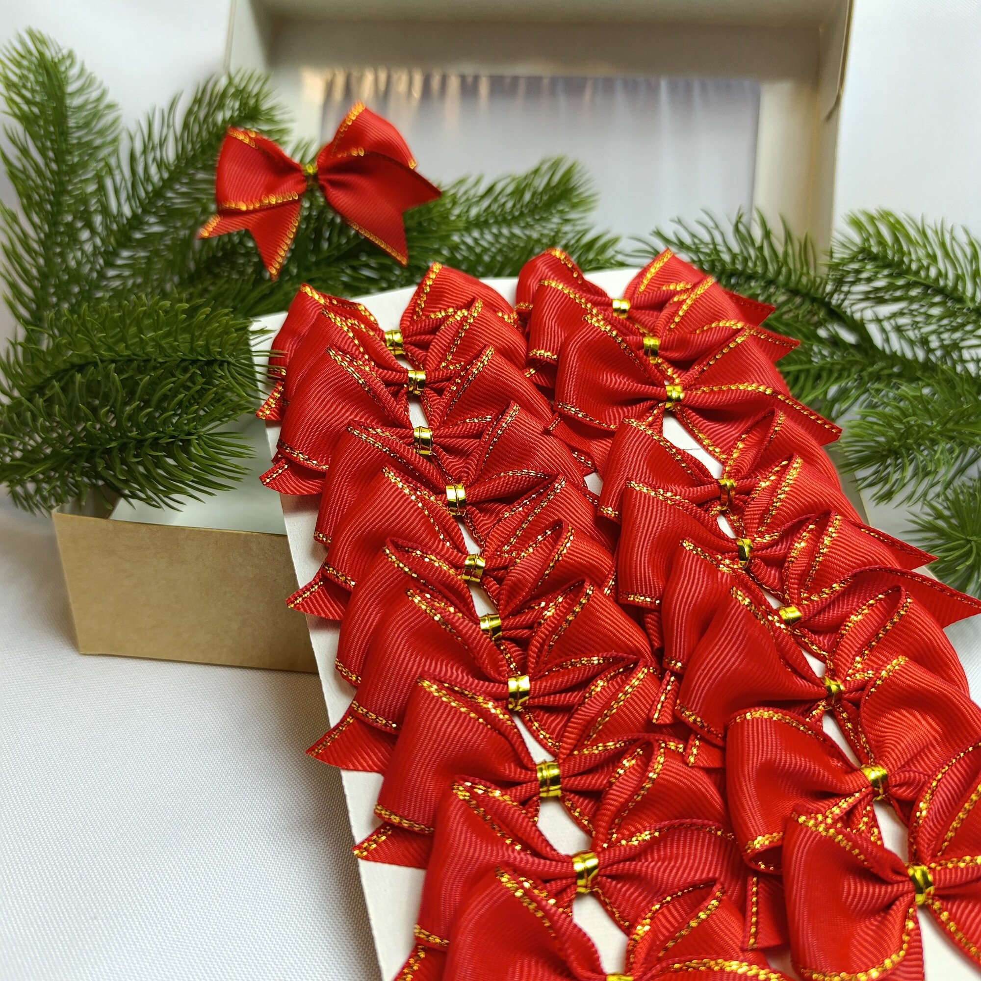 СохранитьБанты новогодние 20 шт, красные с золотым люрексом репсовые с люрексом, крепление твист интересное: