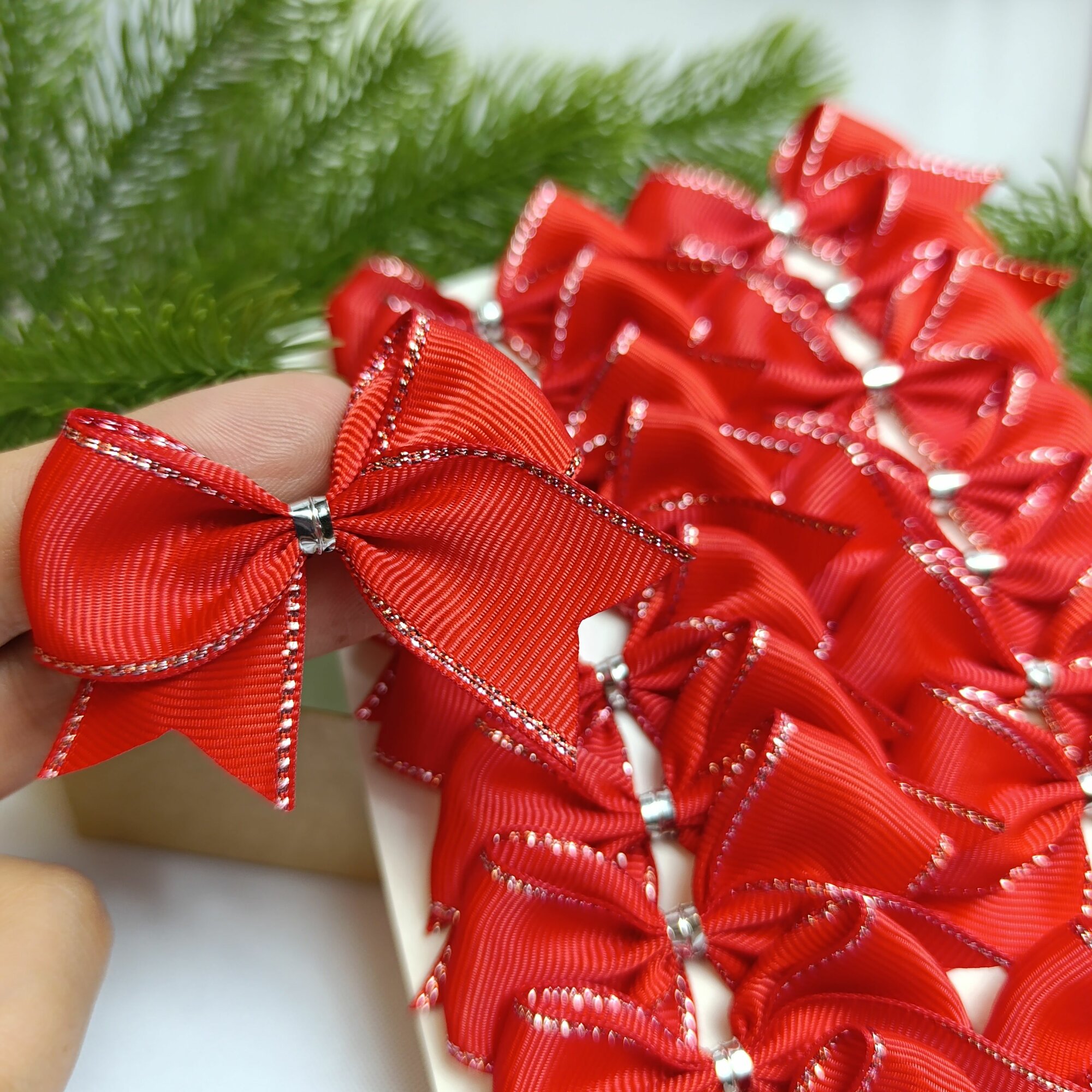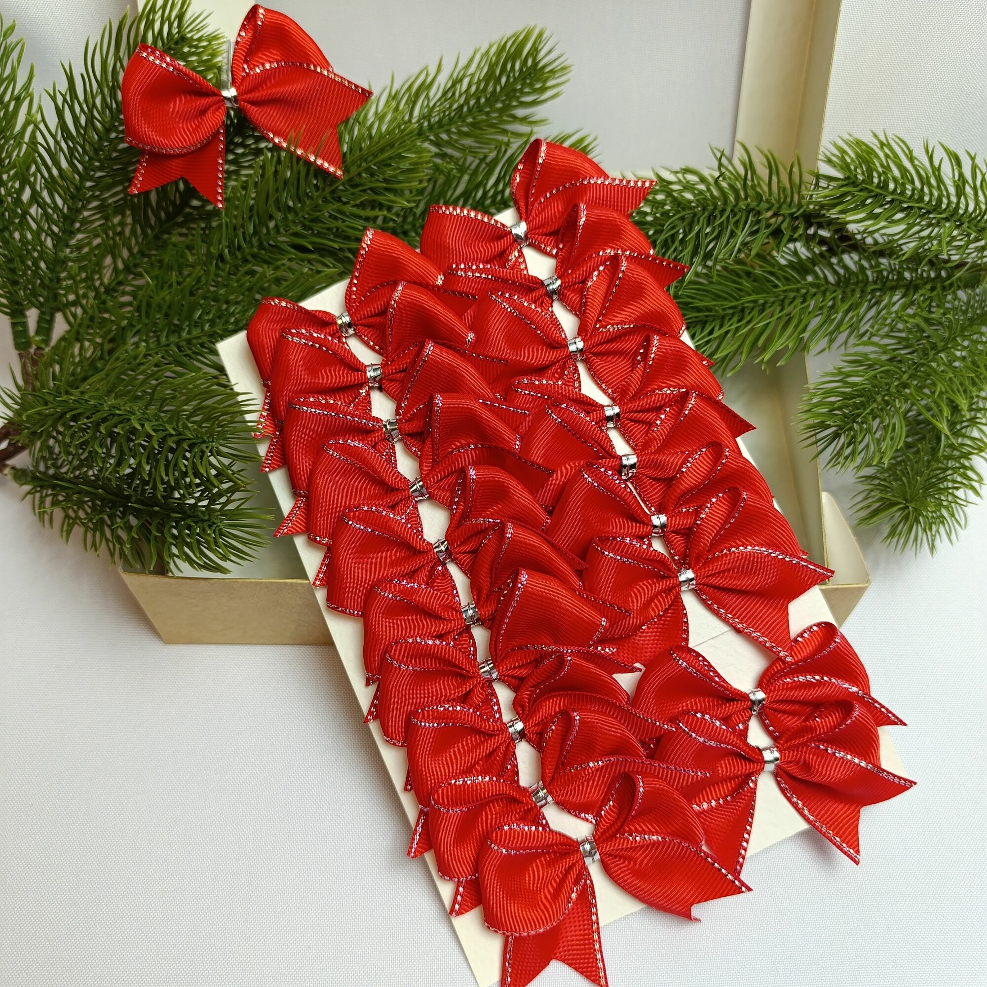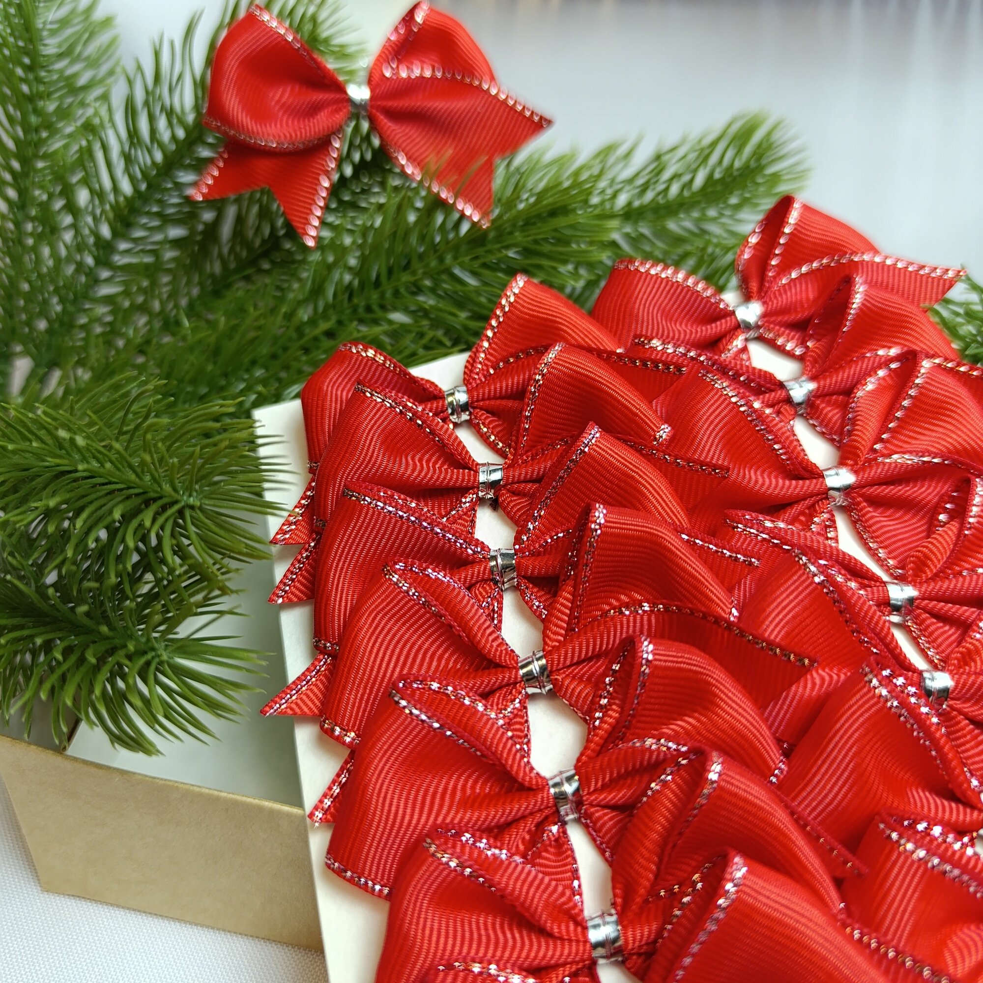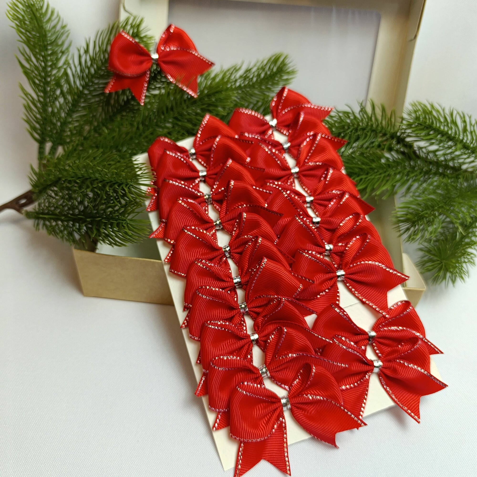 СохранитьБанты новогодние 20 шт, красный цвет с серебряным люриксом, репсовые, крепление твист, мини, 5 см интересное: