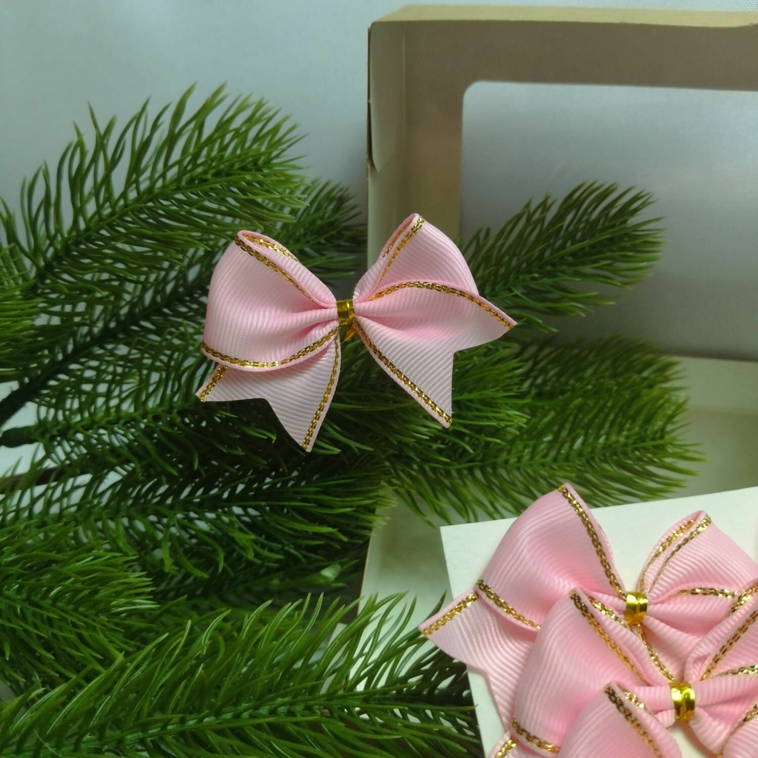 СохранитьБанты новогодние 20 шт, репсовые, в розовом цвете с золотым люрексом, крепление твист интересное: