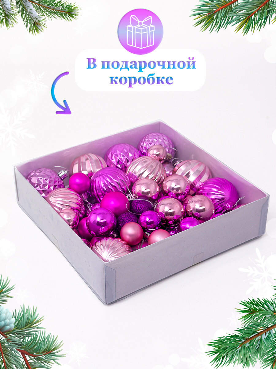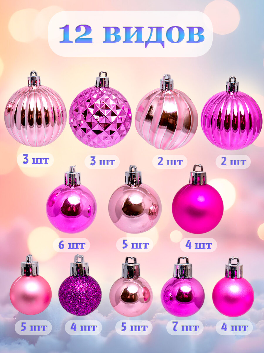 Елочные шары 3 см, 4 см, 6 см (матовый, глянец, глиттер), розовое ассорти, 50 штук в упаковке интересное: