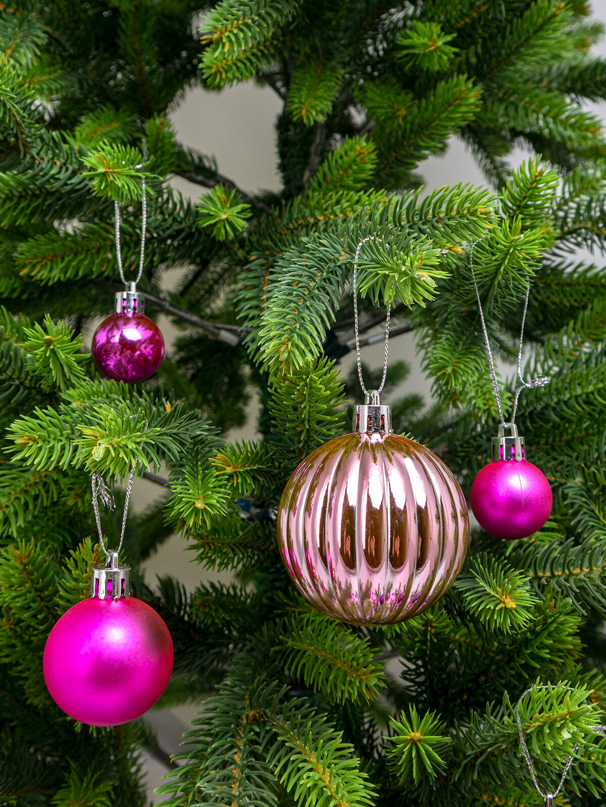 Елочные шары 6 см (матовый, глянец, глиттер), цвет розовый, набор 24 штуки