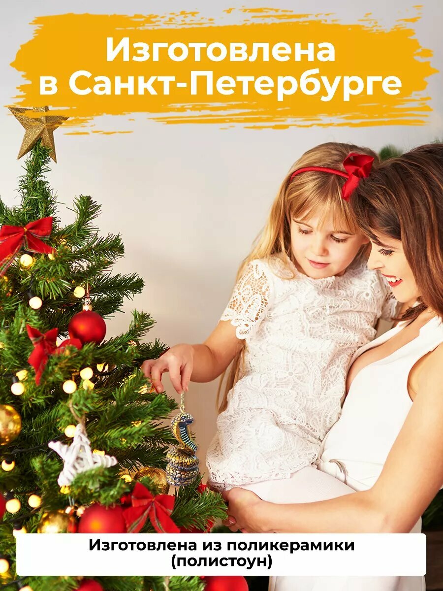 Игрушка на елку змея символ года 2025, 9 см, полистоун, ручная роспись, АБ Сувениры