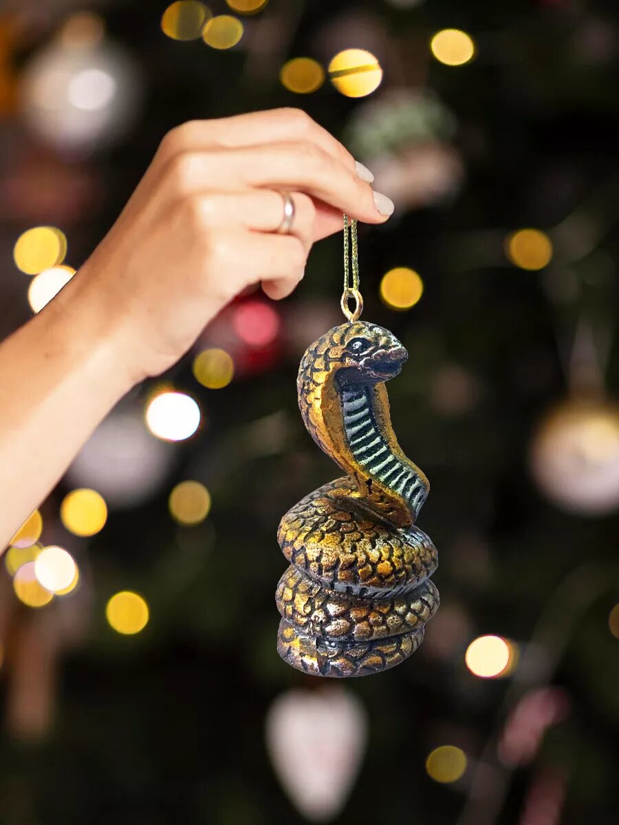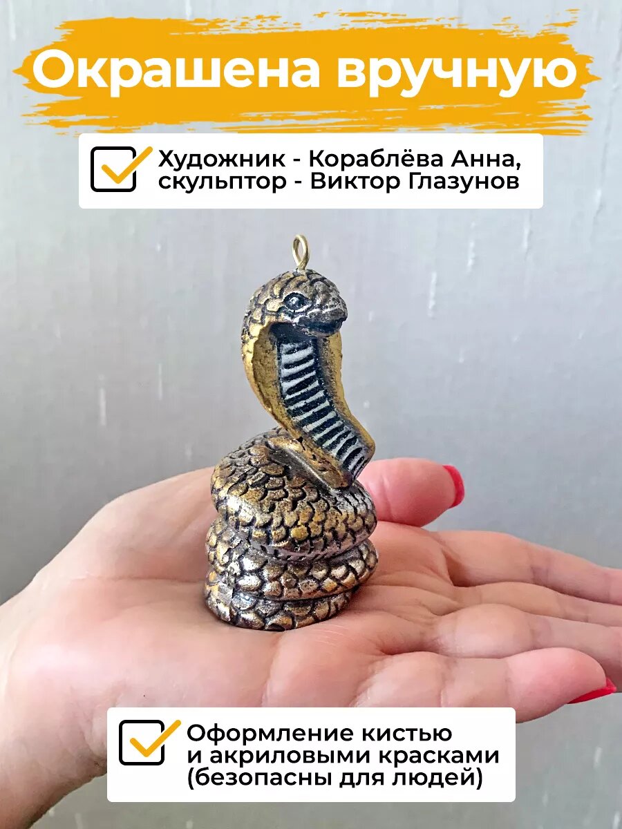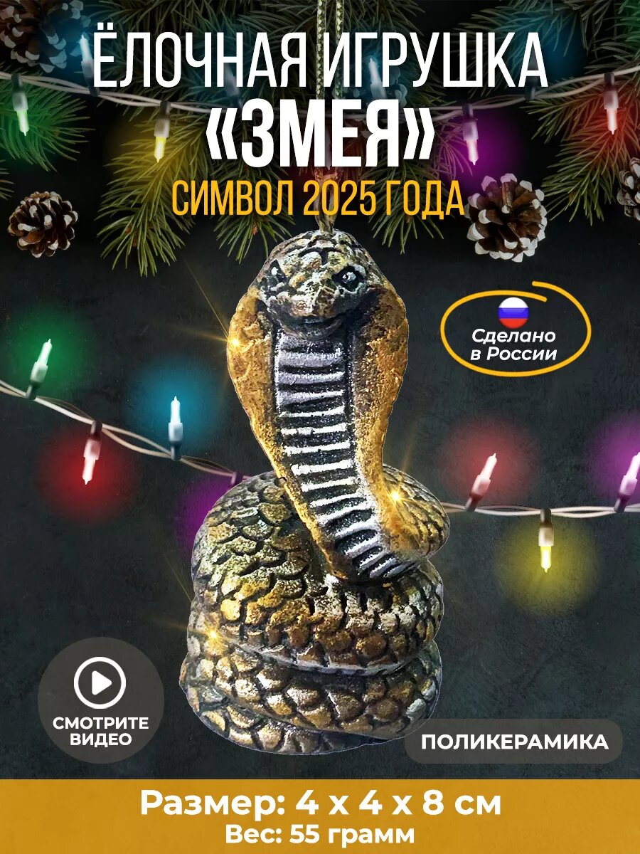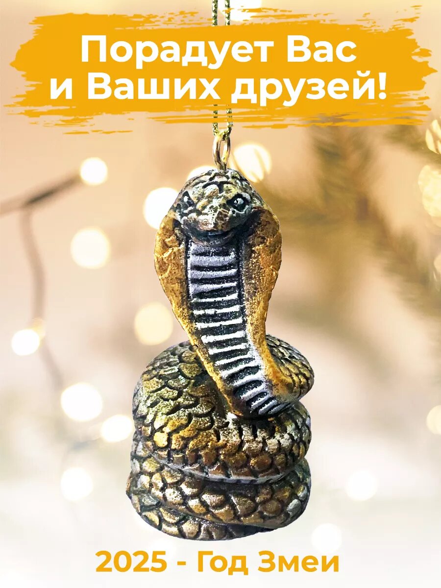 СохранитьЁлочная игрушка Змея символ года, 8 см, полистоун "АБ Сувениры", ручная роспись интересное: