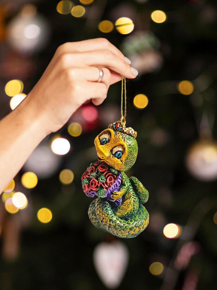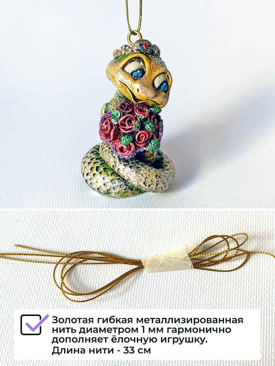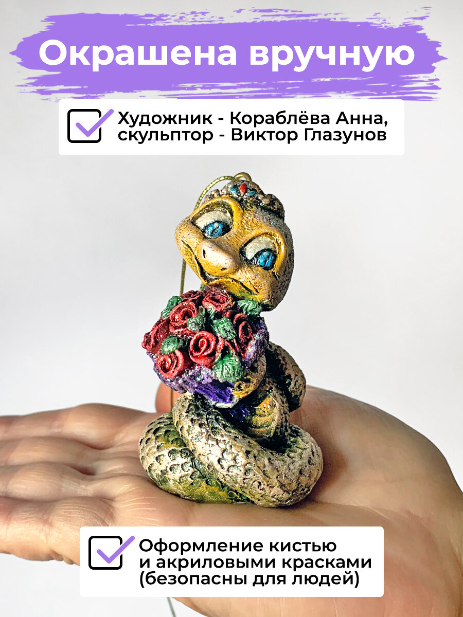 Новогодняя игрушка змея с букетом, 9 см символ года 2025, АБ Сувениры