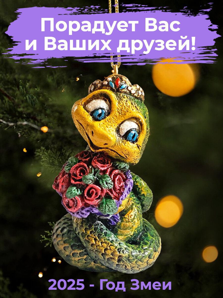 СохранитьНовогодняя игрушка на елку змея зеленая с цветами 8,5 см символ года 2025, ручная роспись, АБ Сувениры интересное: