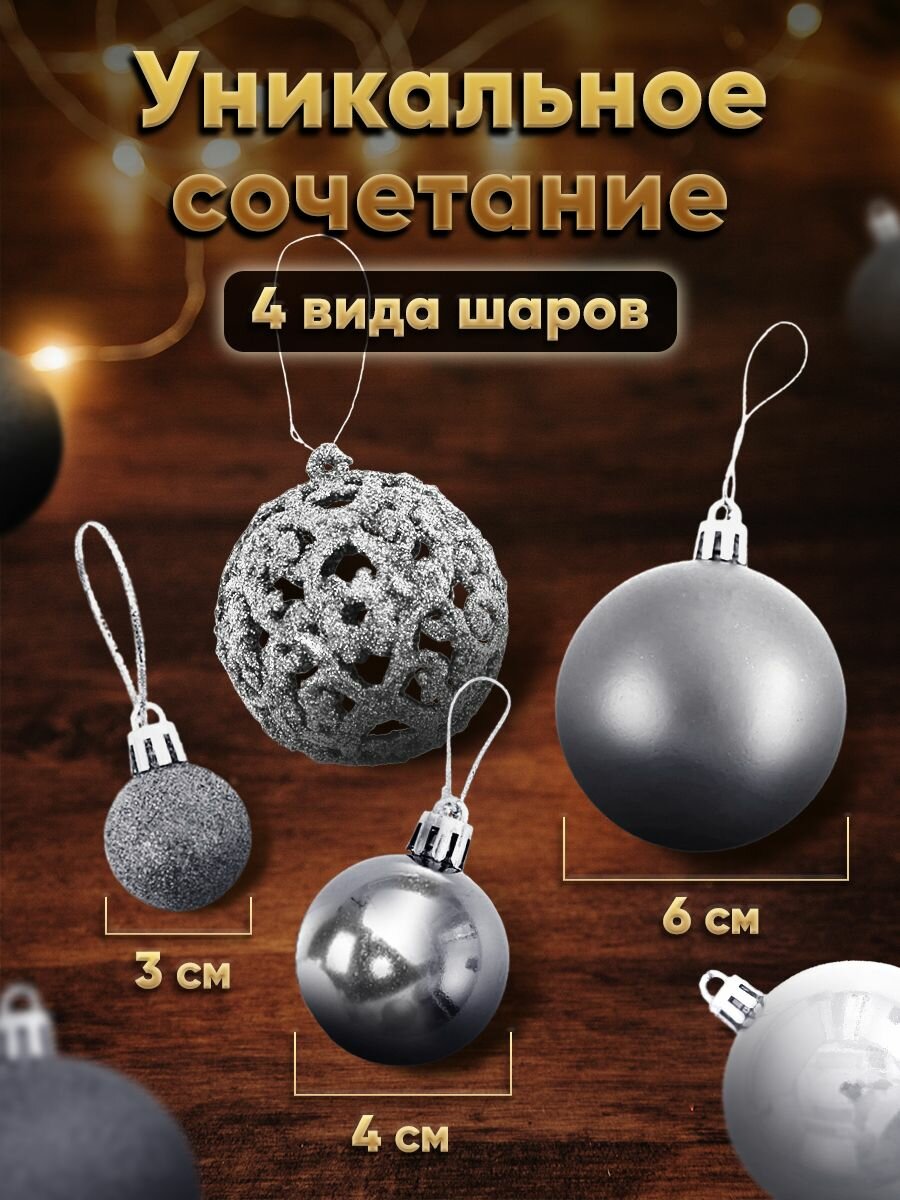 Елочные игрушки Magic Craft Набор 50 шт разного диаметра, подвесные шары новогодние, украшения декоративные