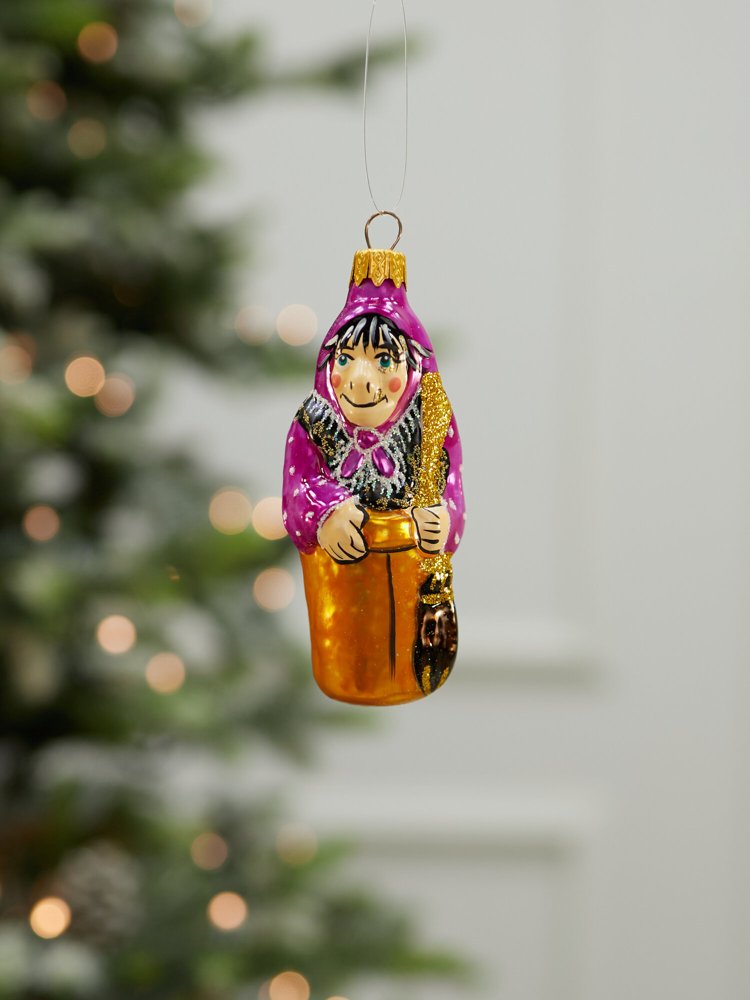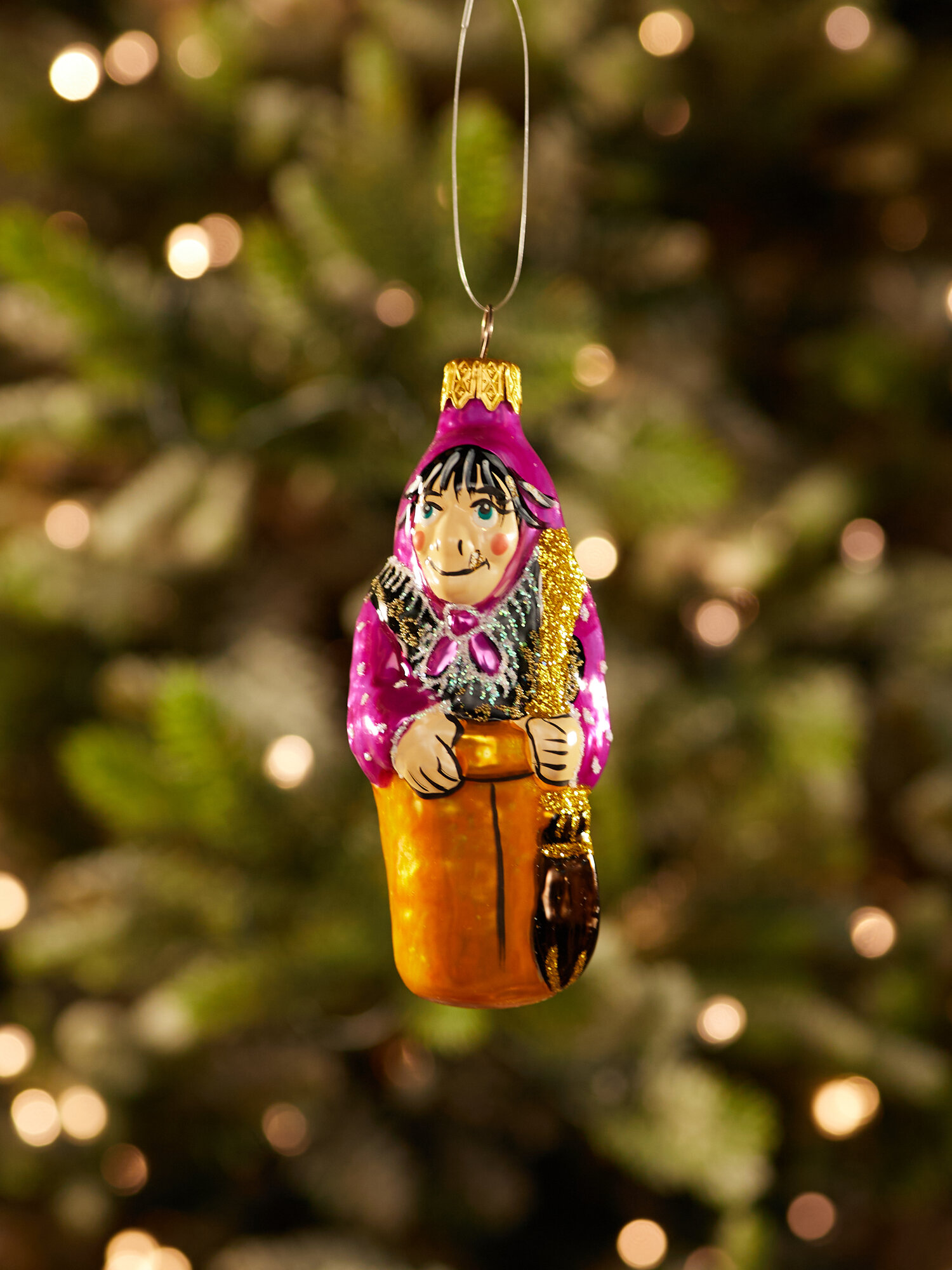 Купить Елочная игрушка Лавка Чудес "Баба-Яга", высота 11,5 см, стекло, золотистая