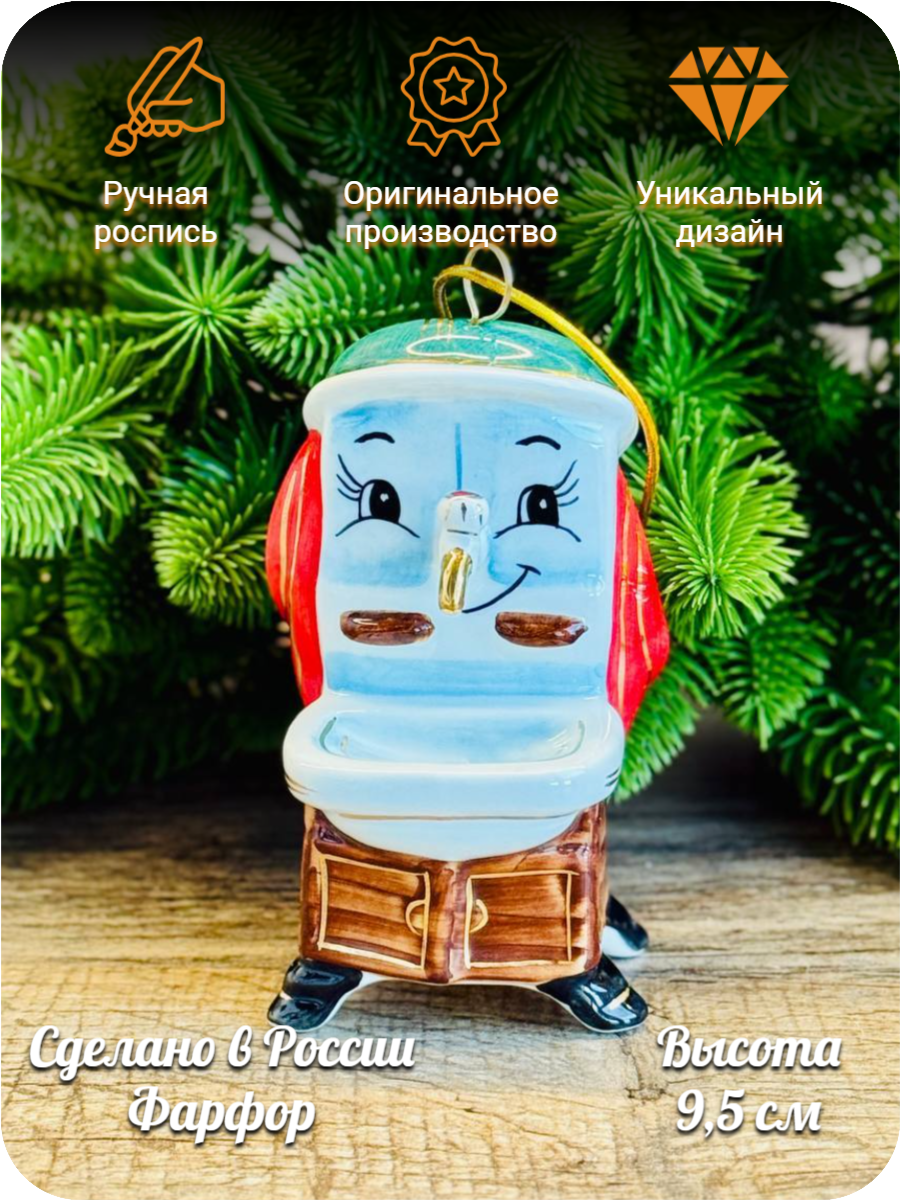 Елочная игрушка Лефортовский фарфор "Мойдодыр с ресничками", ручная роспись интересное: