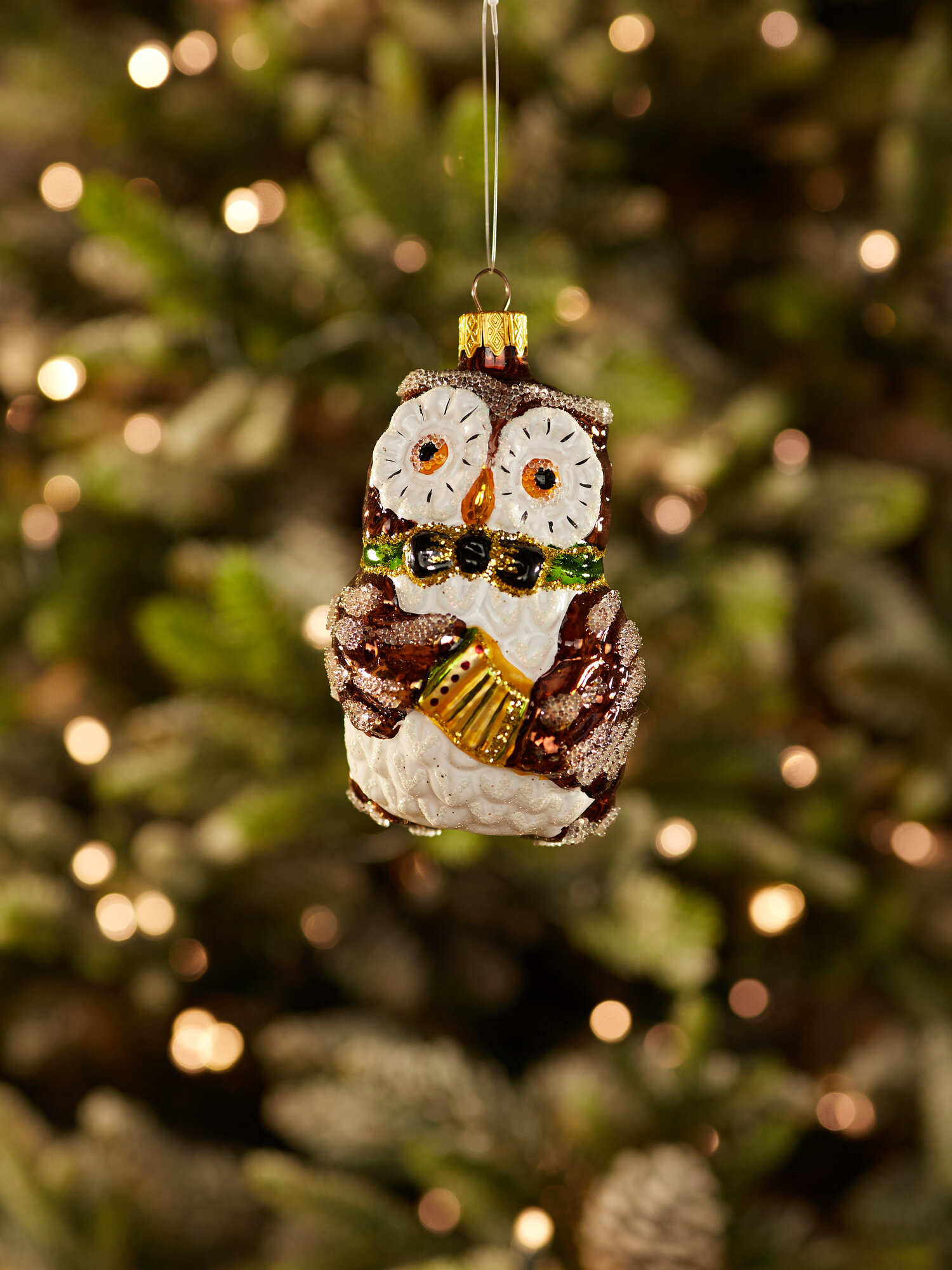 Елочная игрушка Лавка Чудес "Сова", стекло, 11,5 см, коричнево-белая