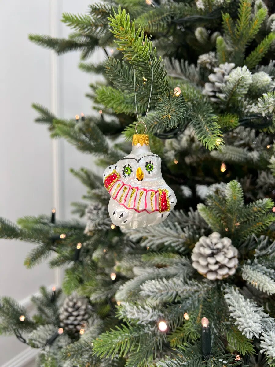 Елочная игрушка Лавка Чудес "Сова" , стекло, высота 8 см, белый цвет интересное: