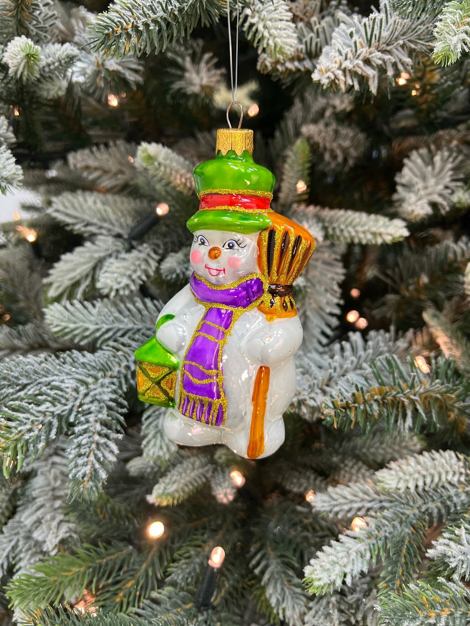 Купить Елочная игрушка "Снеговик" Лавка Чудес, стекло, цвет зеленый, высота 13,5 см