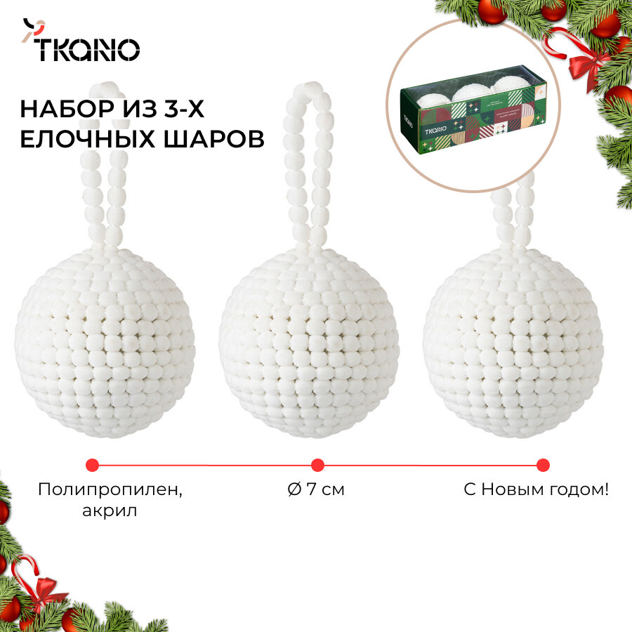 Набор ёлочных шаров White elegance небьющиеся New Year Essential 3 шт Tkano TK24-NY_DEC0015
