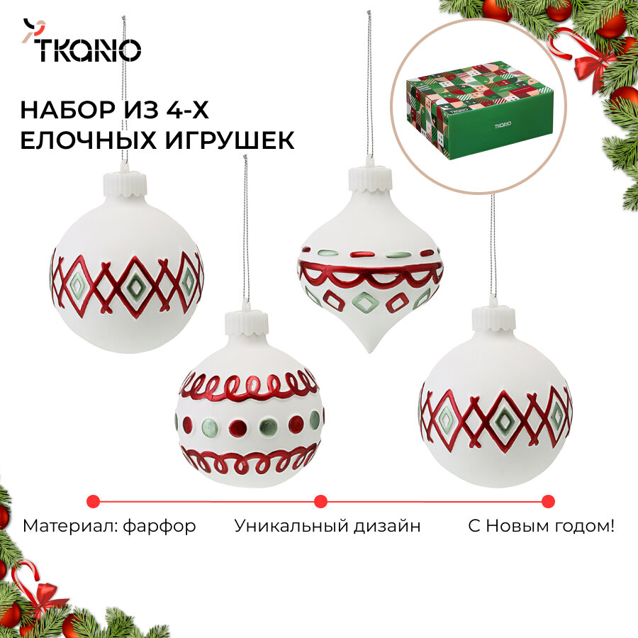 Купить Набор ёлочных игрушек 4 шт шары с подсветкой Festive embroidey из фарфора New Year Essential Tkano TK24-NY_DEC0023