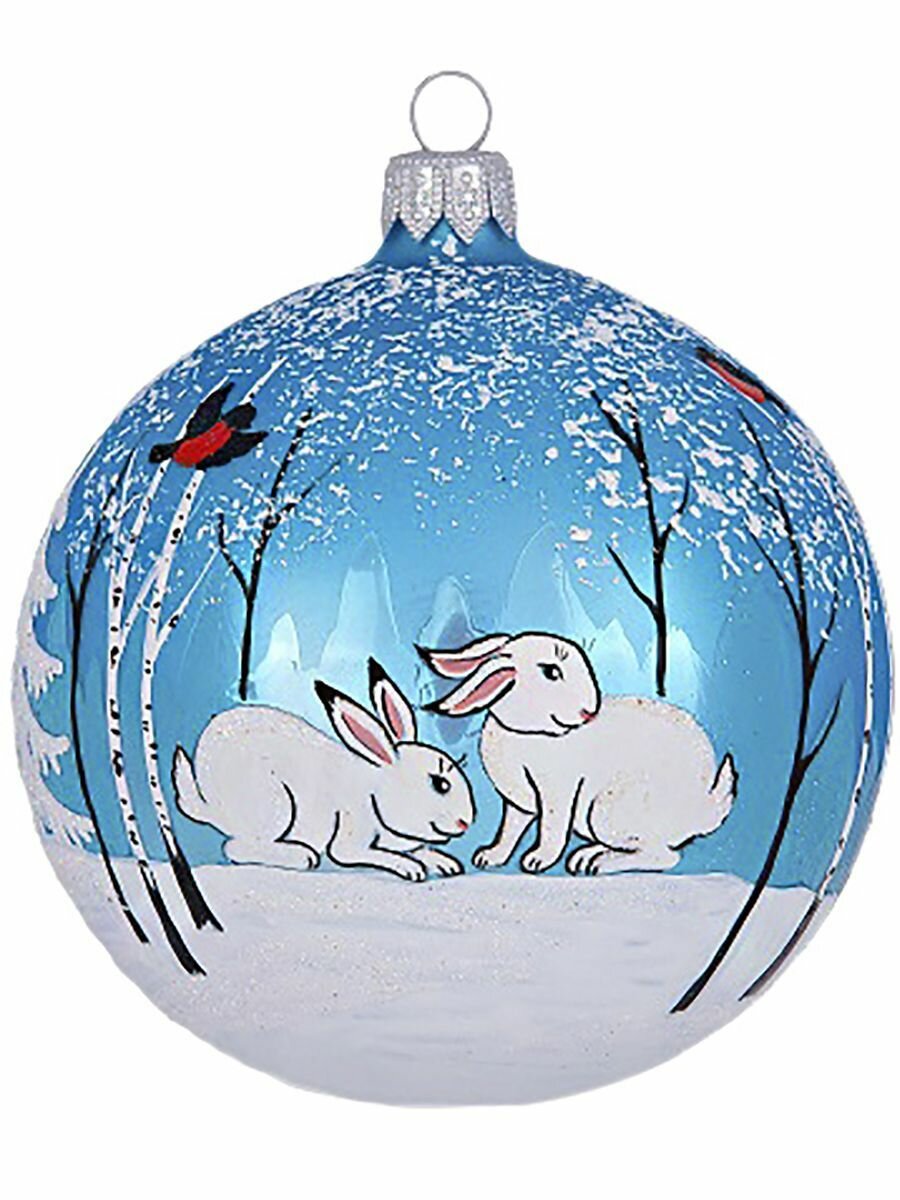 Елочный шар елочка Заинька в подарочной упаковке 85мм