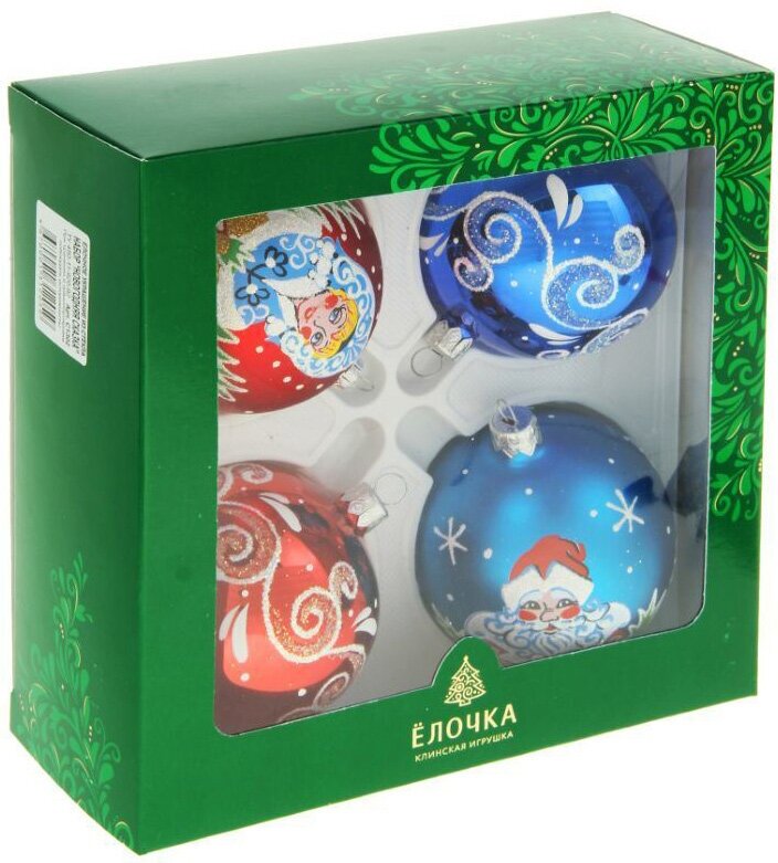 Набор новогодних шаров "Новогодняя сказка" (набор 4 шт) стекло 7,5 см интересное: