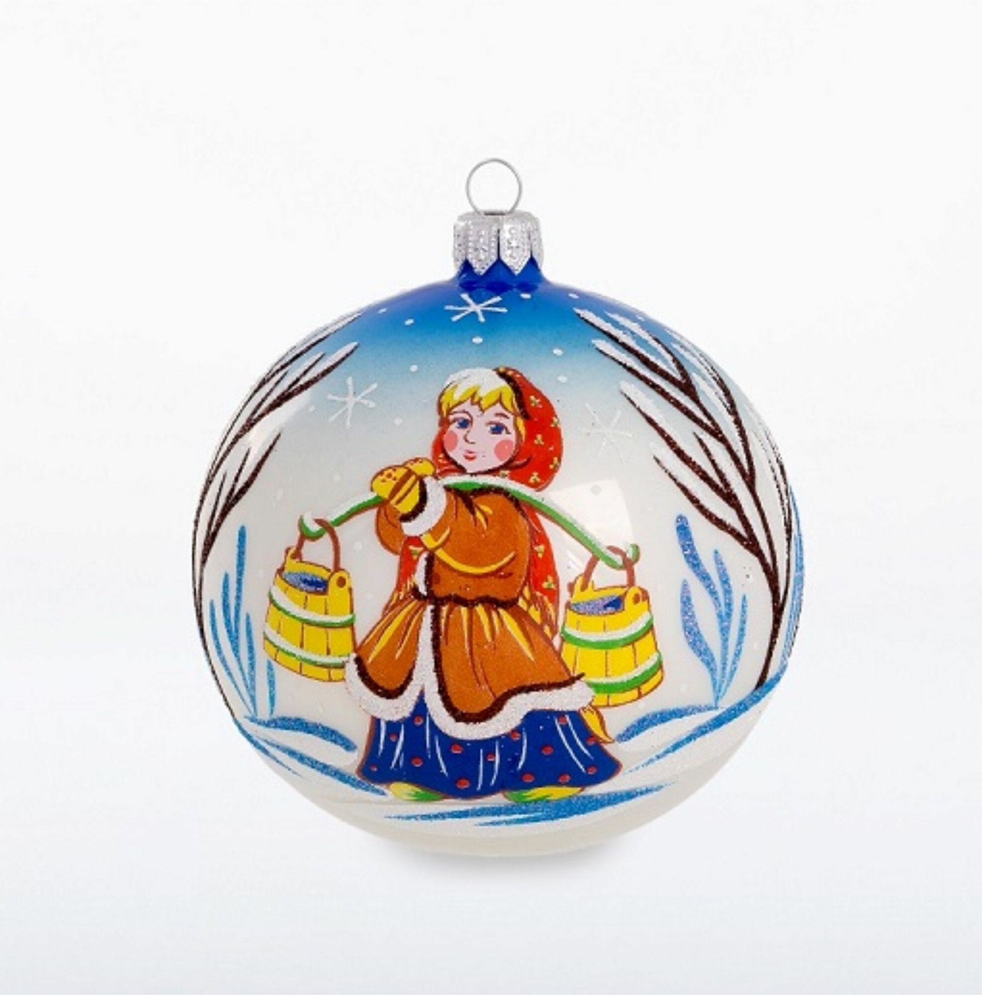 Елочный шар Елочка Ярославна С1573, голубой/белый, 9.5 см, 1 шт. стекло ручная роспись интересное: