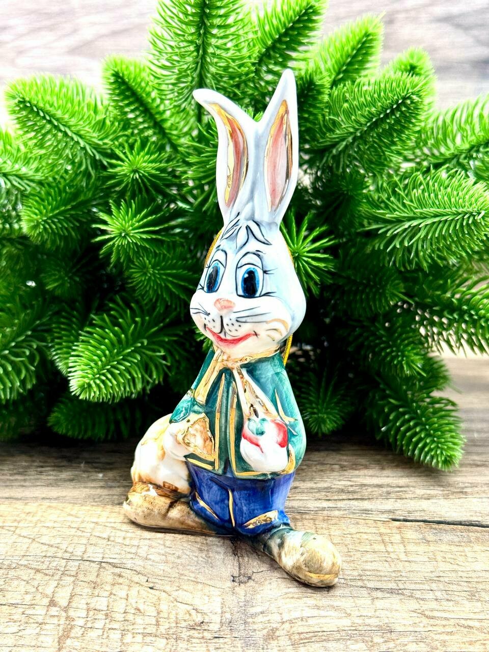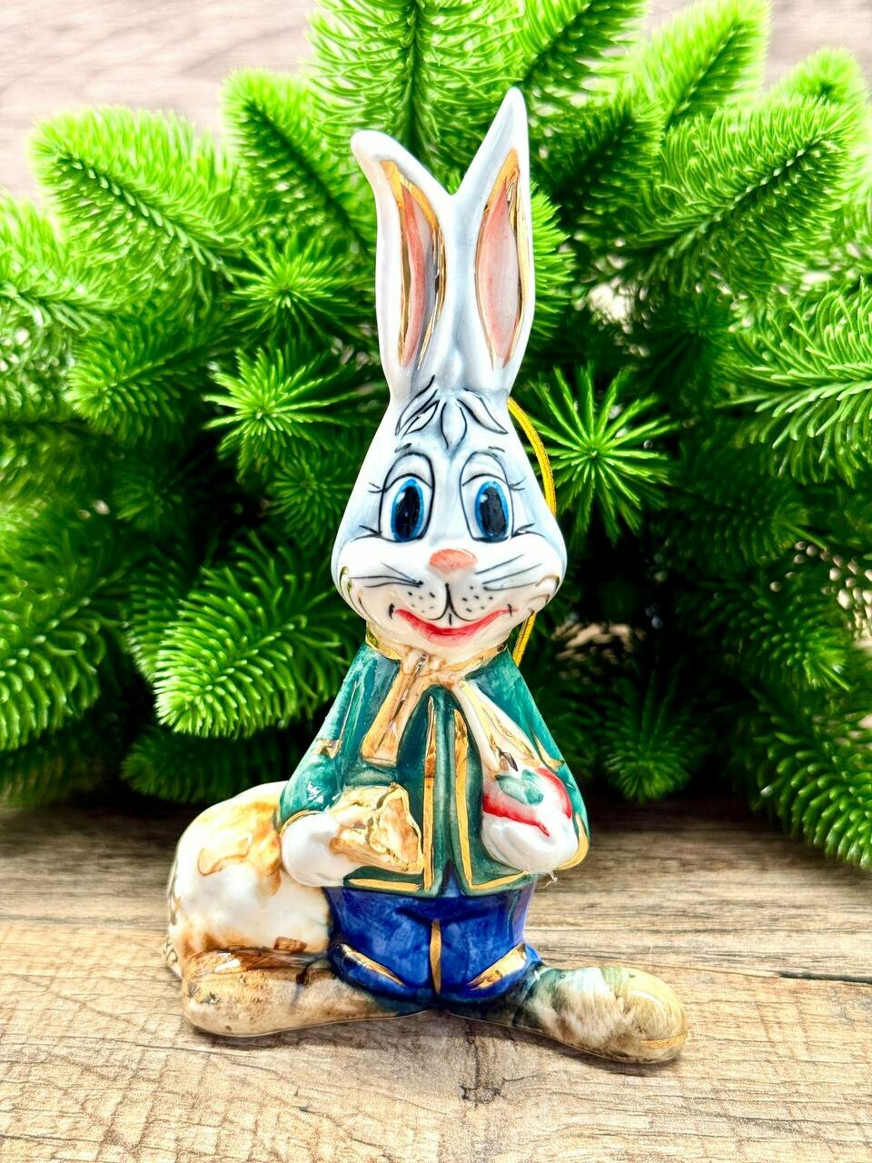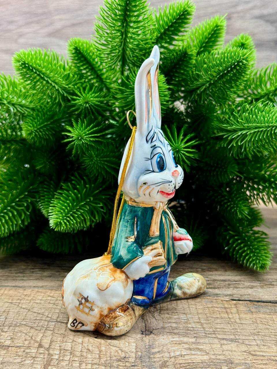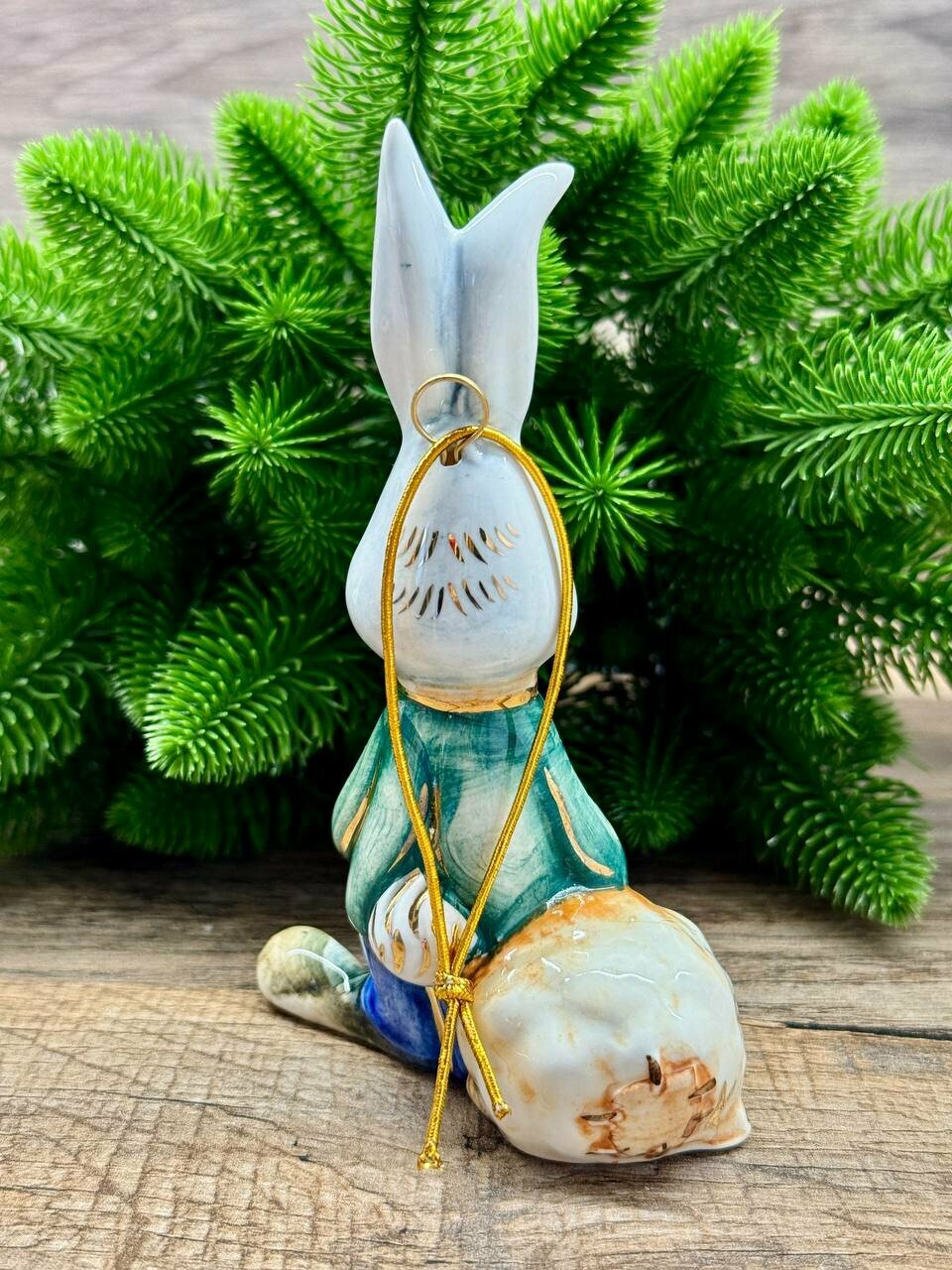Елочная игрушка Лефортовский фарфор "Заяц с мешком яблок", ручная роспись интересное:
