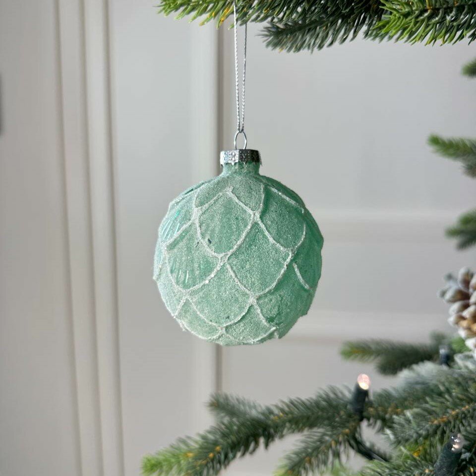 Купить Елочная игрушка Лавка Чудес, стекло, шар, высота 8см, бело-зеленая