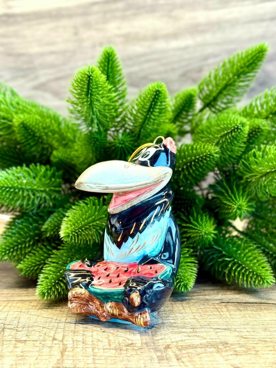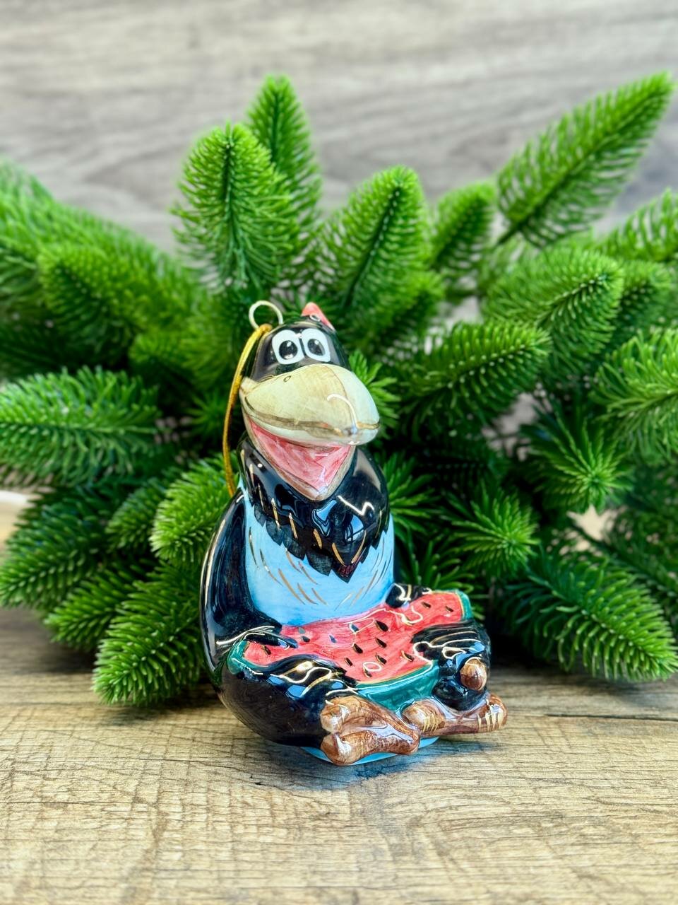 Купить Елочная игрушка Союзмультфильм «Ворона с арбузом «Прелестно, прелестно!», фарфор, ручная роспись, высота 12 см