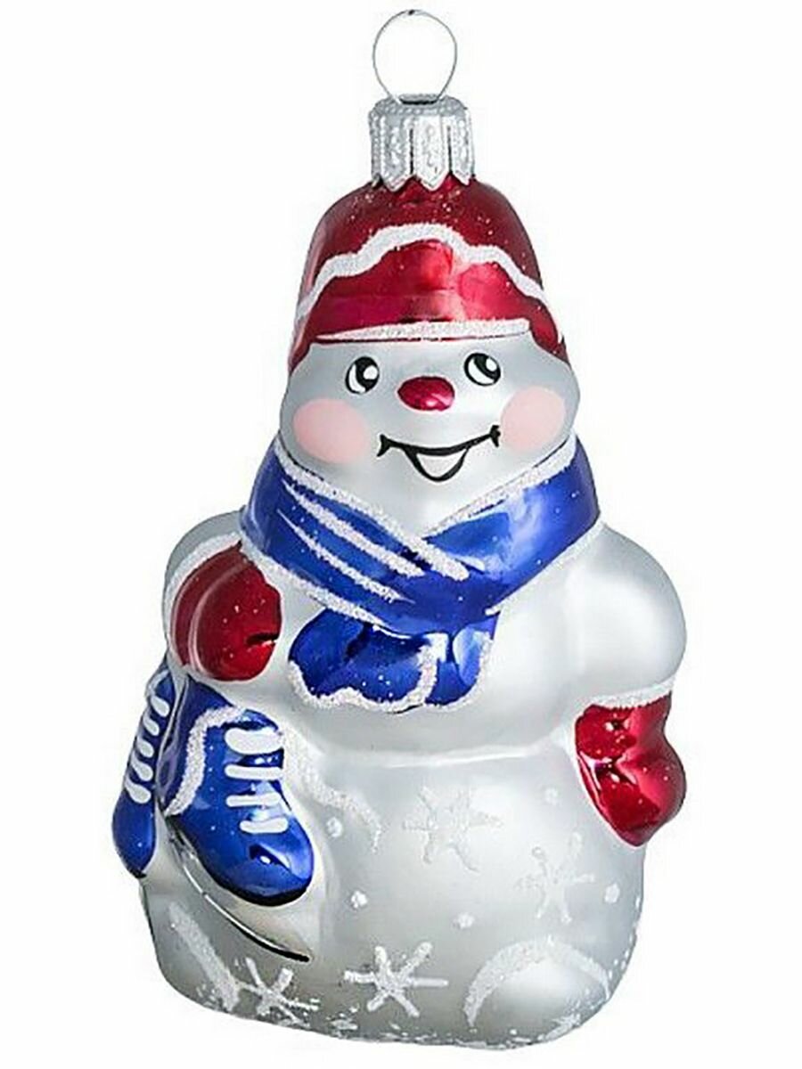 Елочная игрушка Снеговик с коньками Синий в подарочной упаковке 8,5см интересное: