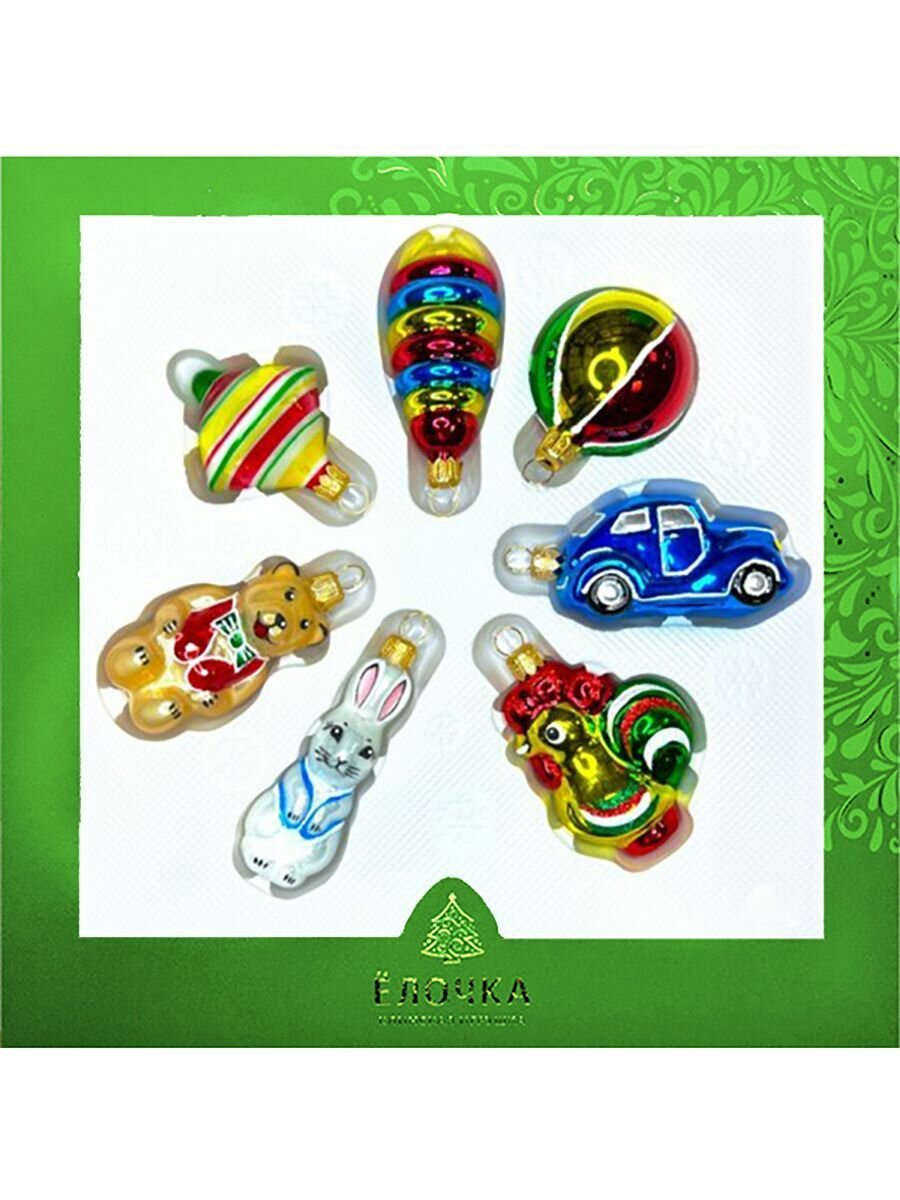Купить Набор елочных игрушек из стекла Детские игрушки елочка 4-6см в подарочной упаковке