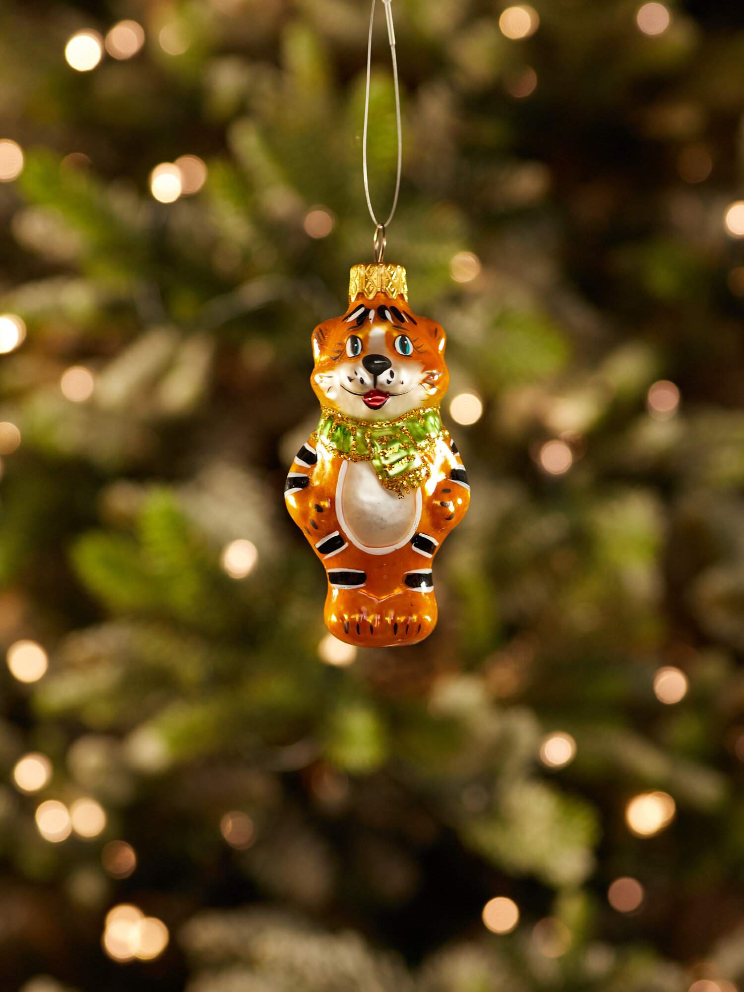 Елочная игрушка Лавка Чудес "Тигр", оранжевая, стеклянная, 9,5 см интересное: