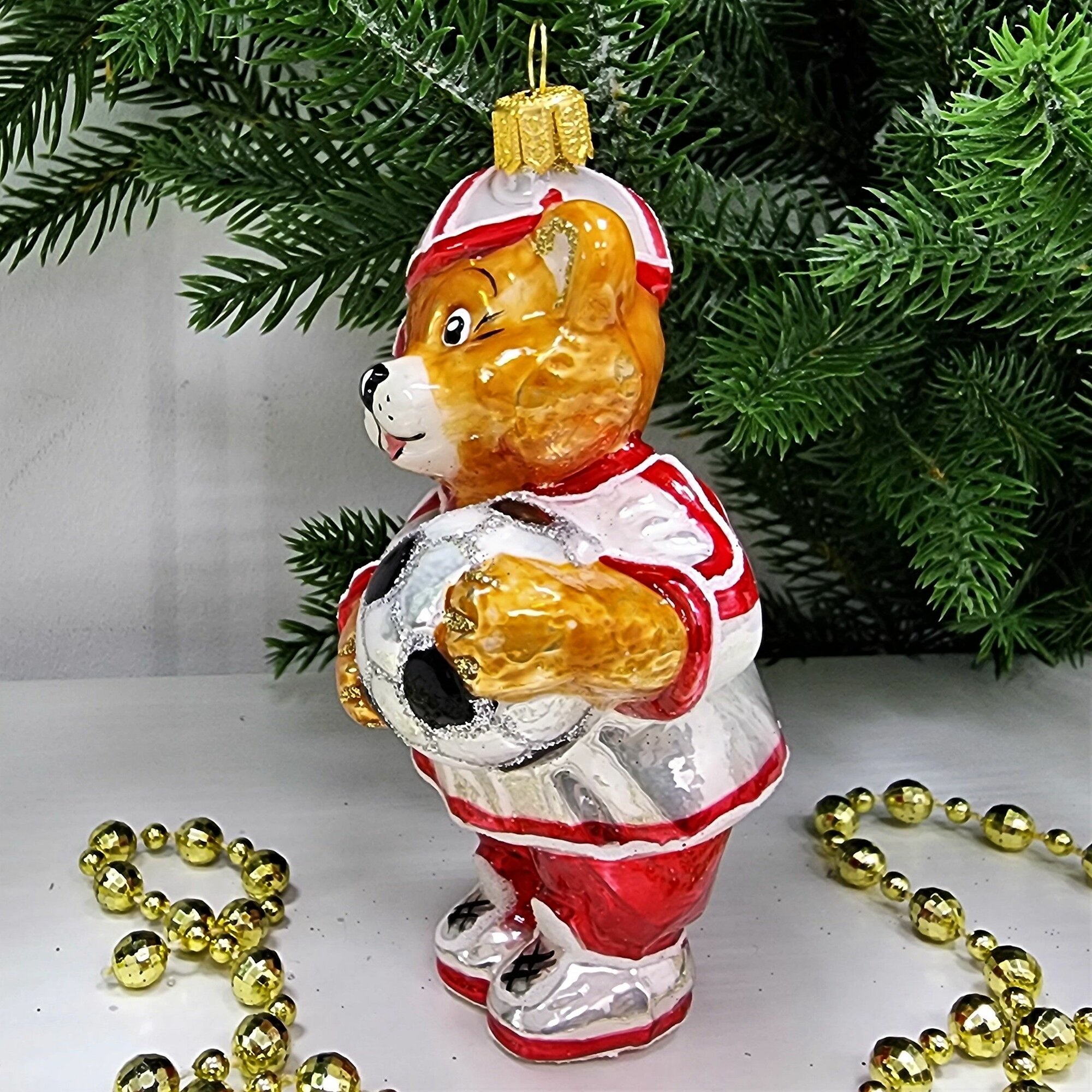 Купить Irena-Co елочная игрушка, стекло Мишка Футболист (11х6,5х6см)