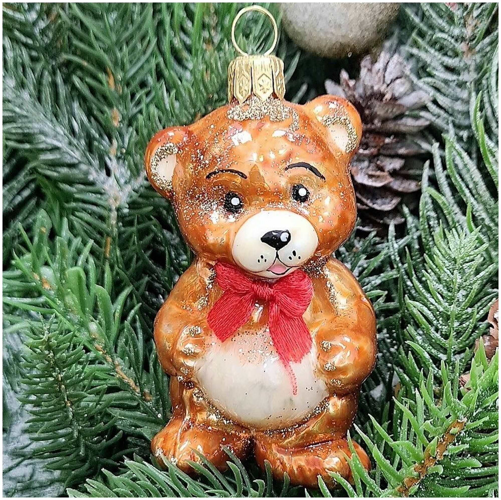 Irena-Co елочная игрушка, стекло Мишка (7,5х5х5см)