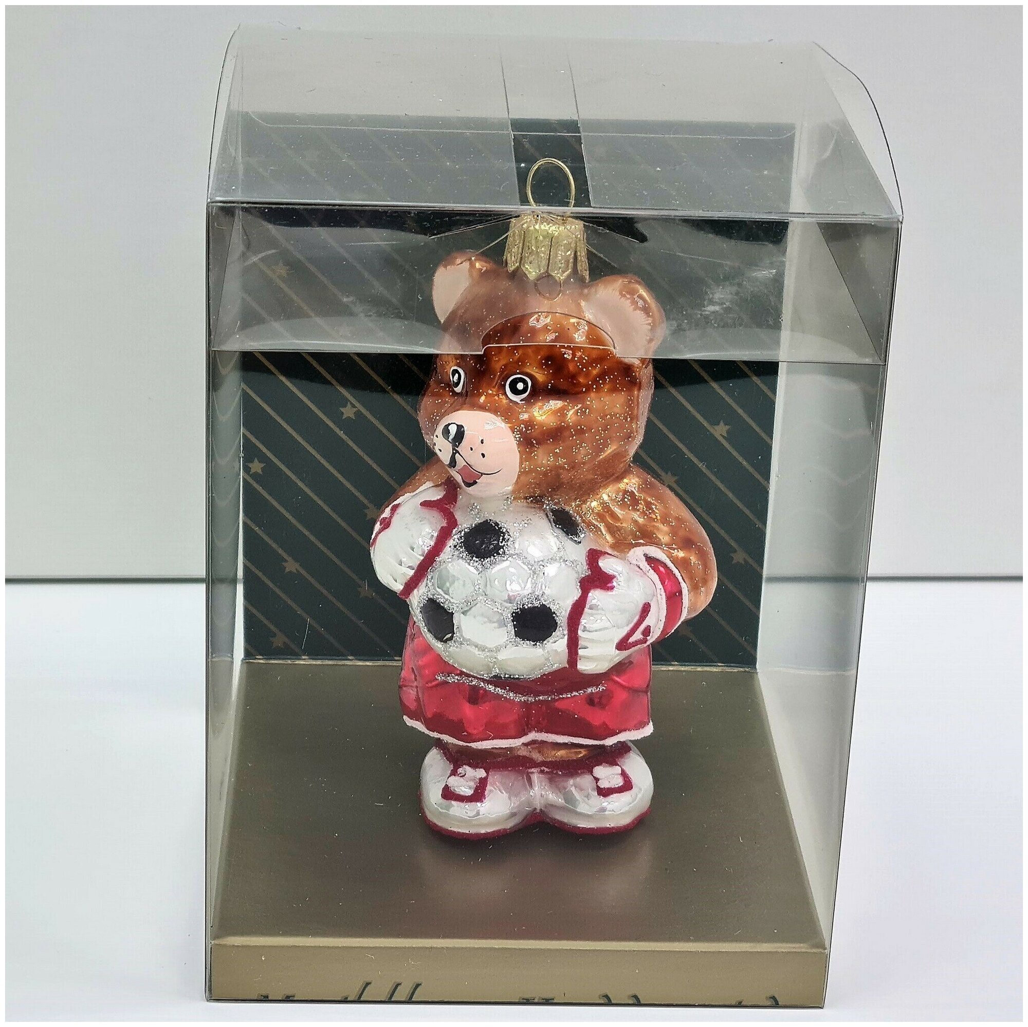 Irena-Co елочная игрушка, стекло Мишка Футболист (11х6,5х6см)