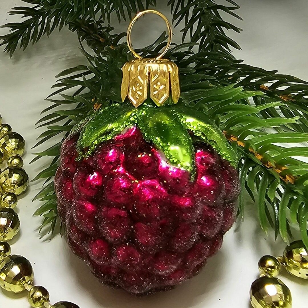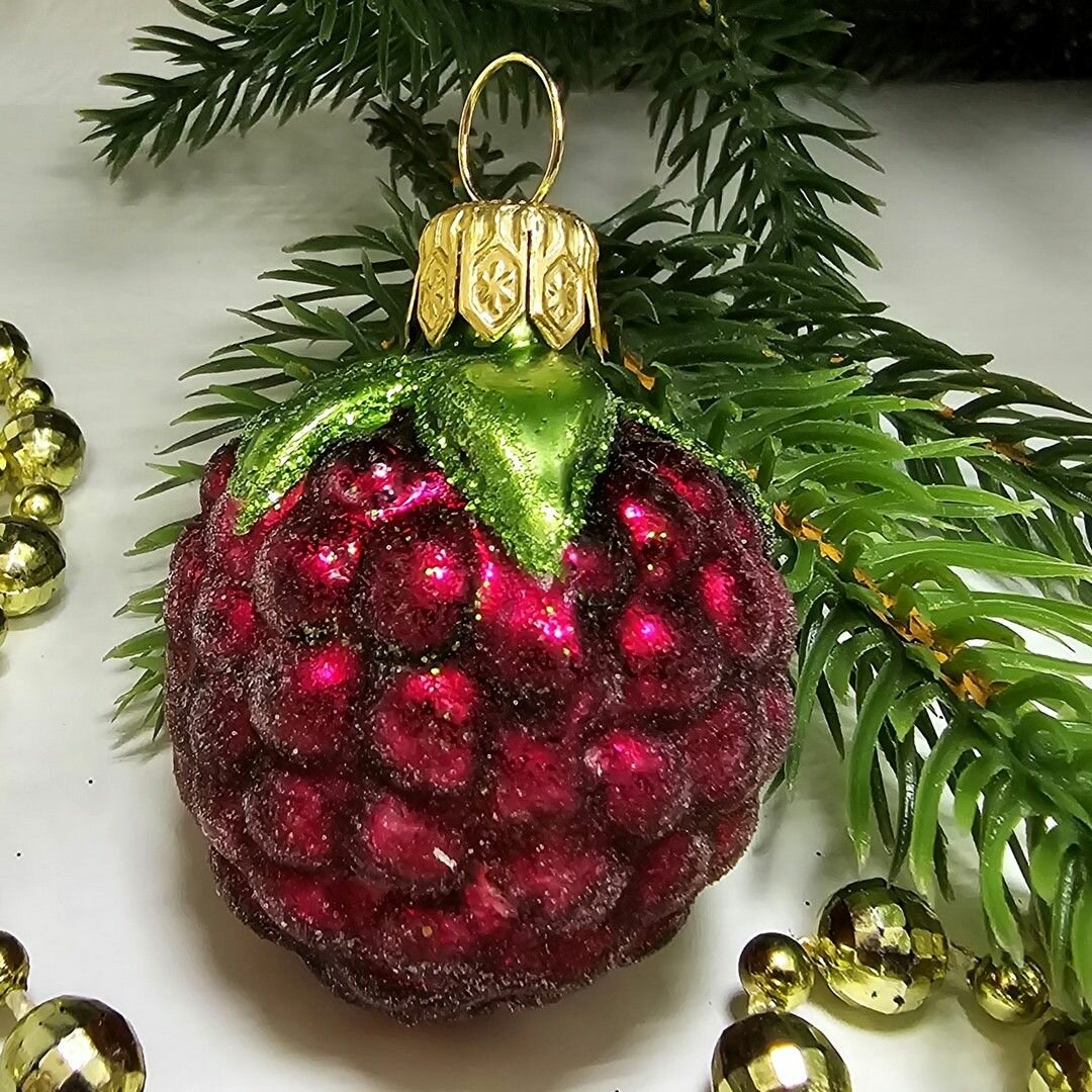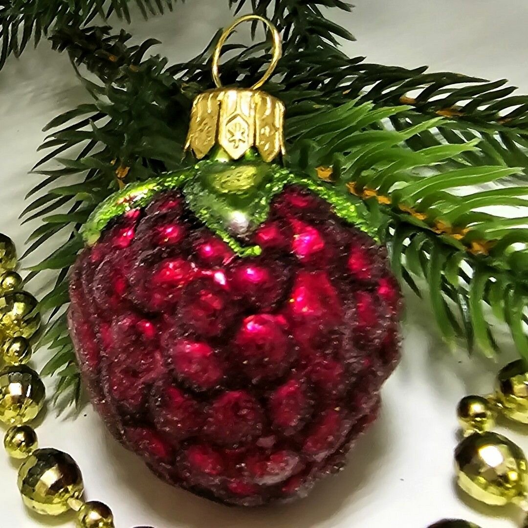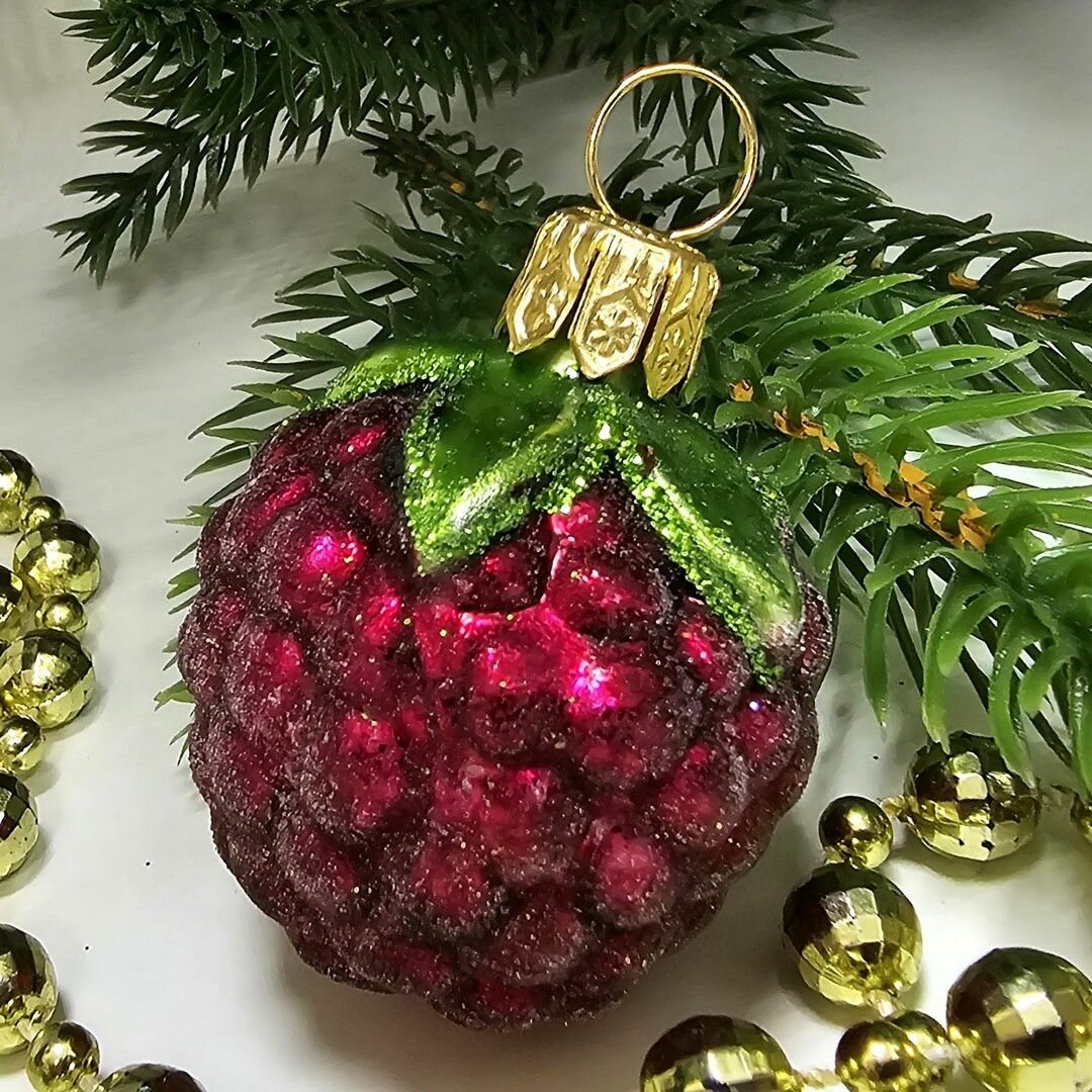 Irena-Co елочная игрушка, стекло Ежевика красная (5х3,5х3,5см)