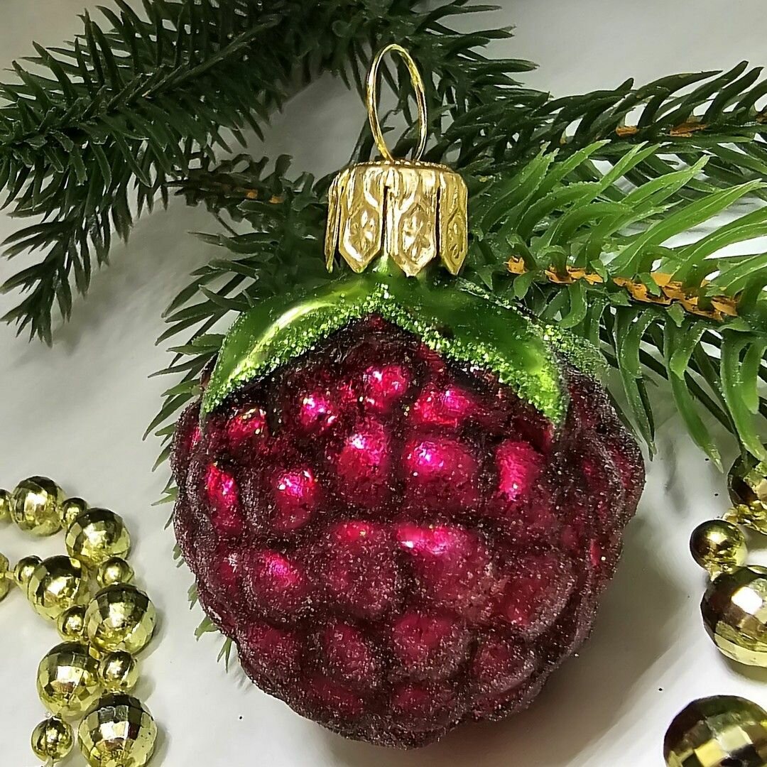 Irena-Co елочная игрушка, стекло Ежевика черная (8,5х4,5х5см)