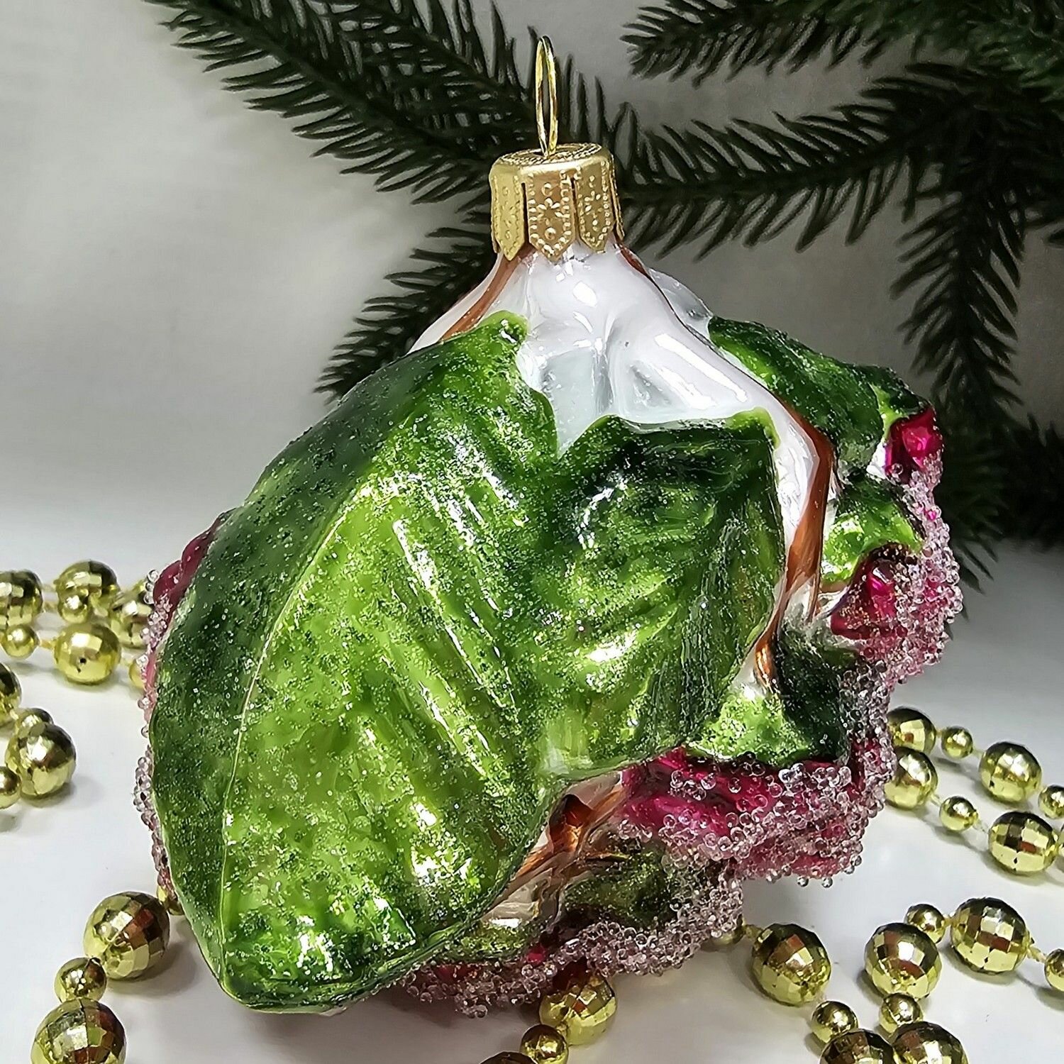 Irena-Co елочная игрушка, стекло Гранат с камнями (8х7х6см)