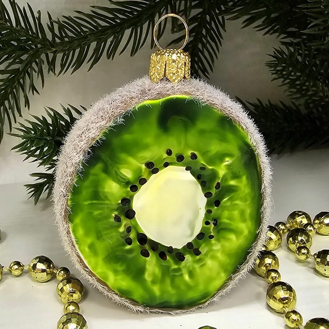 Купить Irena-Co елочная игрушка, стекло Киви (6,5х5х1,5см)