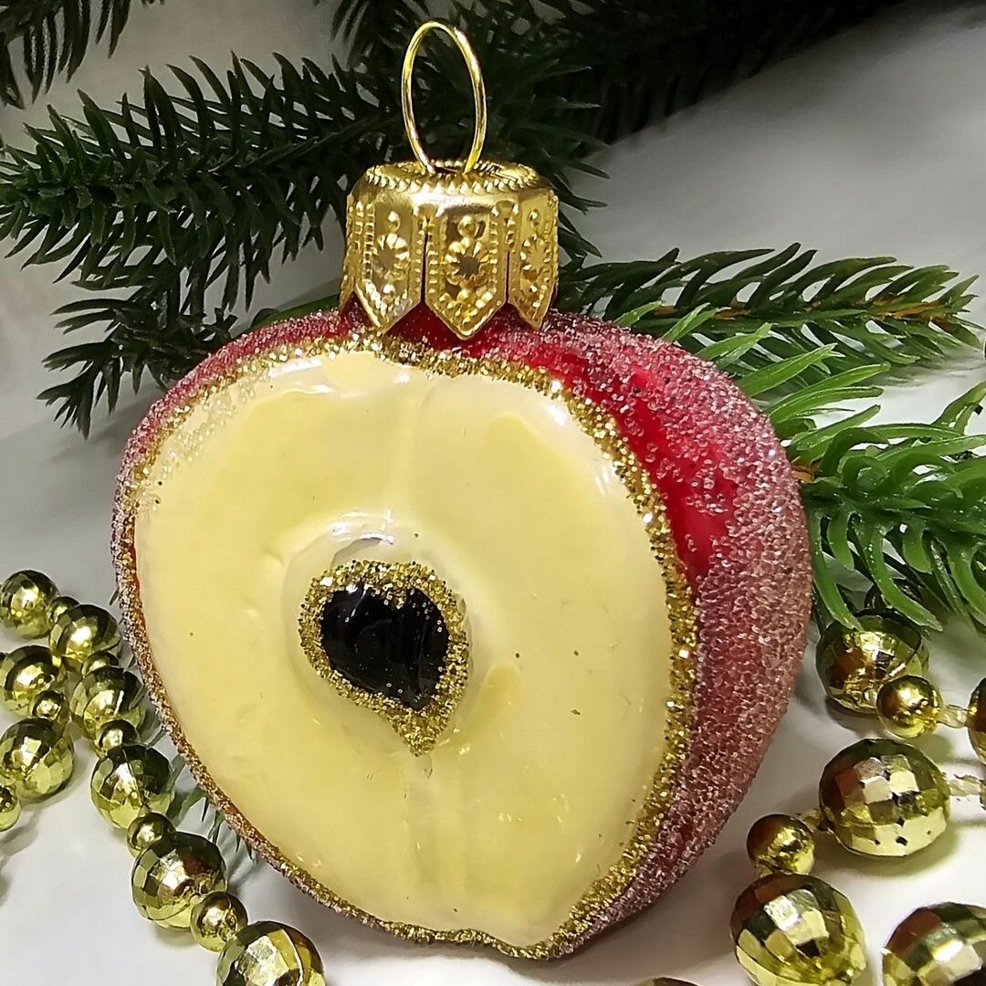 Irena-Co елочная игрушка, стекло Половинка яблока (8,5х8х4,5см)