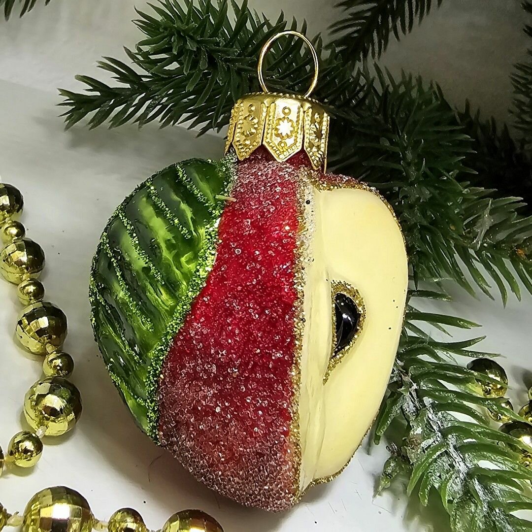 Irena-Co елочная игрушка, стекло Половинка яблока сахар (8,5х8х4см)