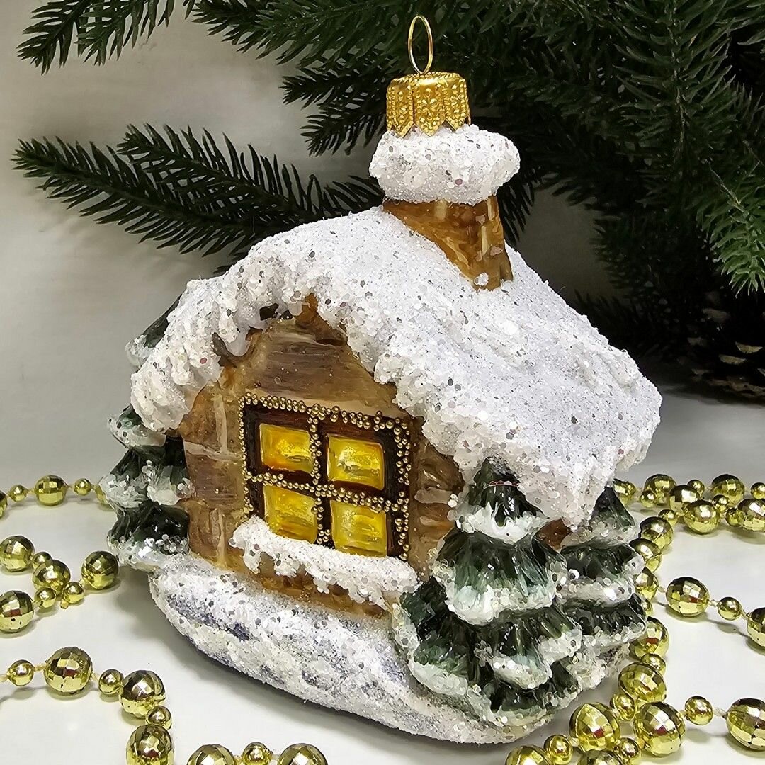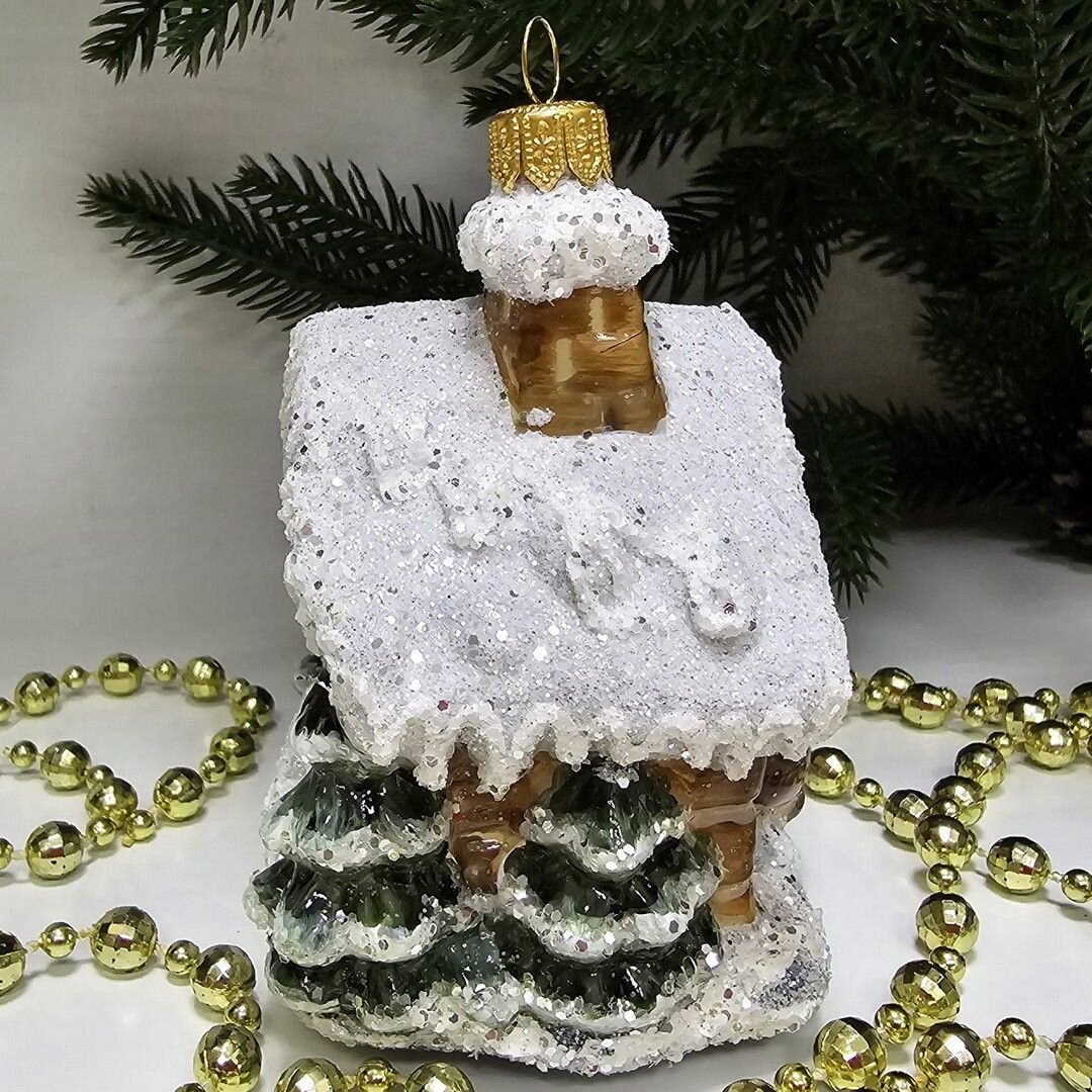 Irena-Co елочная игрушка, стекло Домик с острой крышей винтаж (12,5х7,5х5,5см)