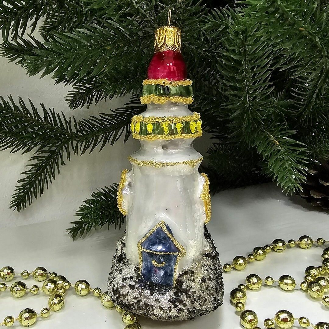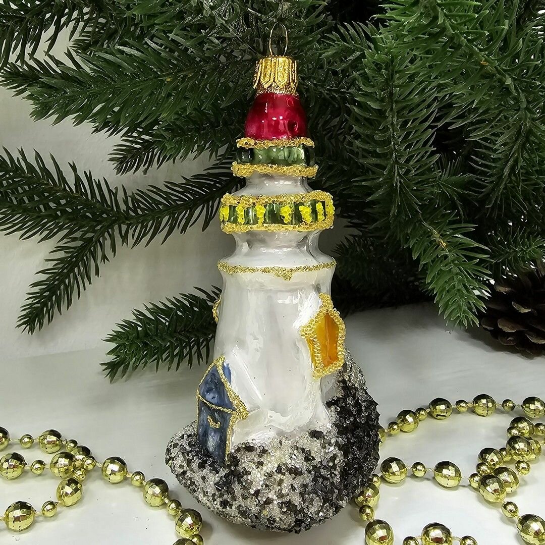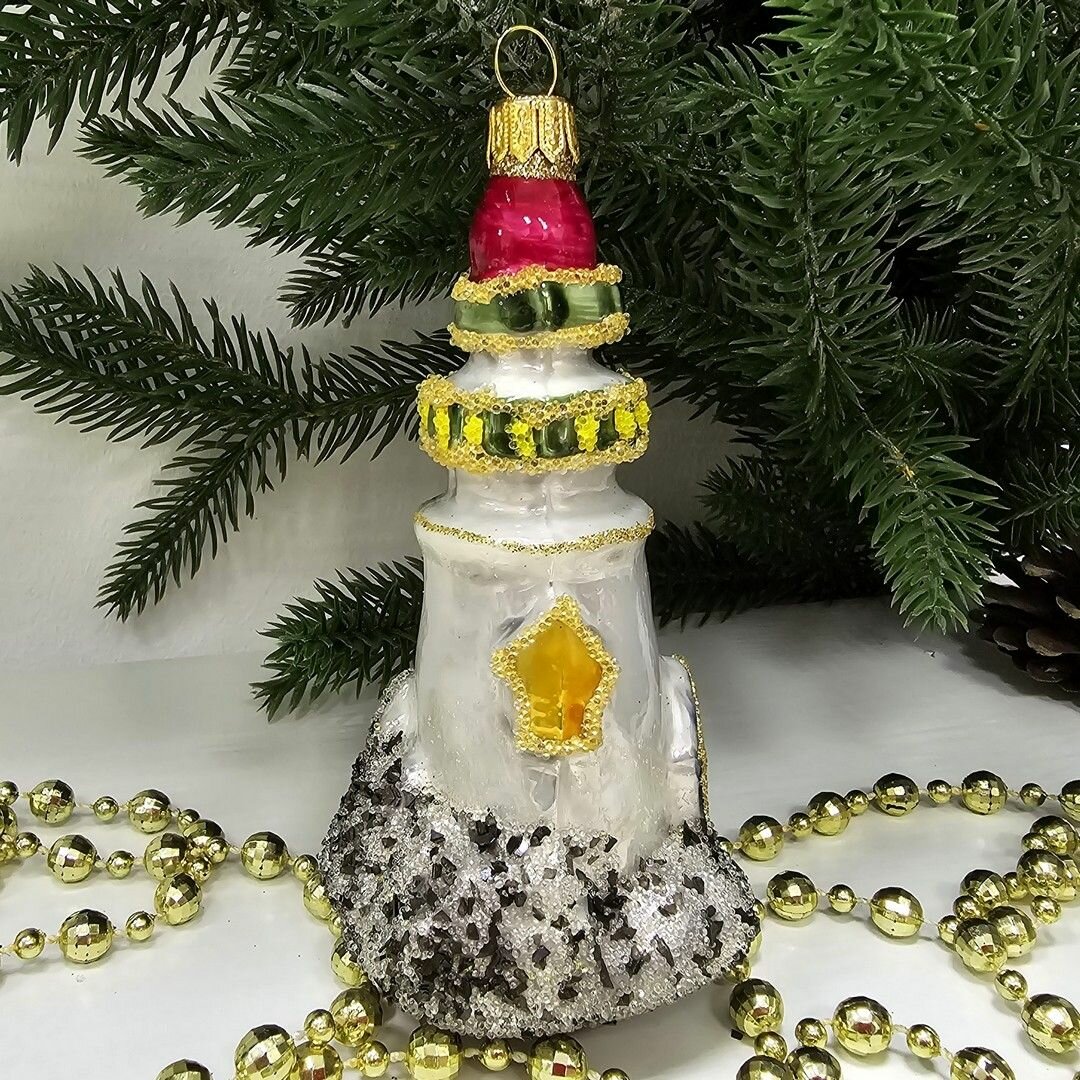 Irena-Co елочная игрушка, стекло Маяк (11,5х5,5х5см)