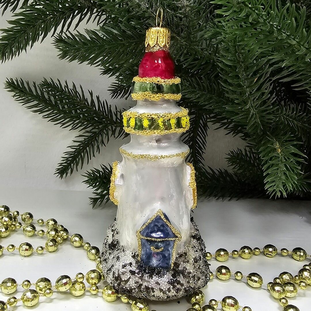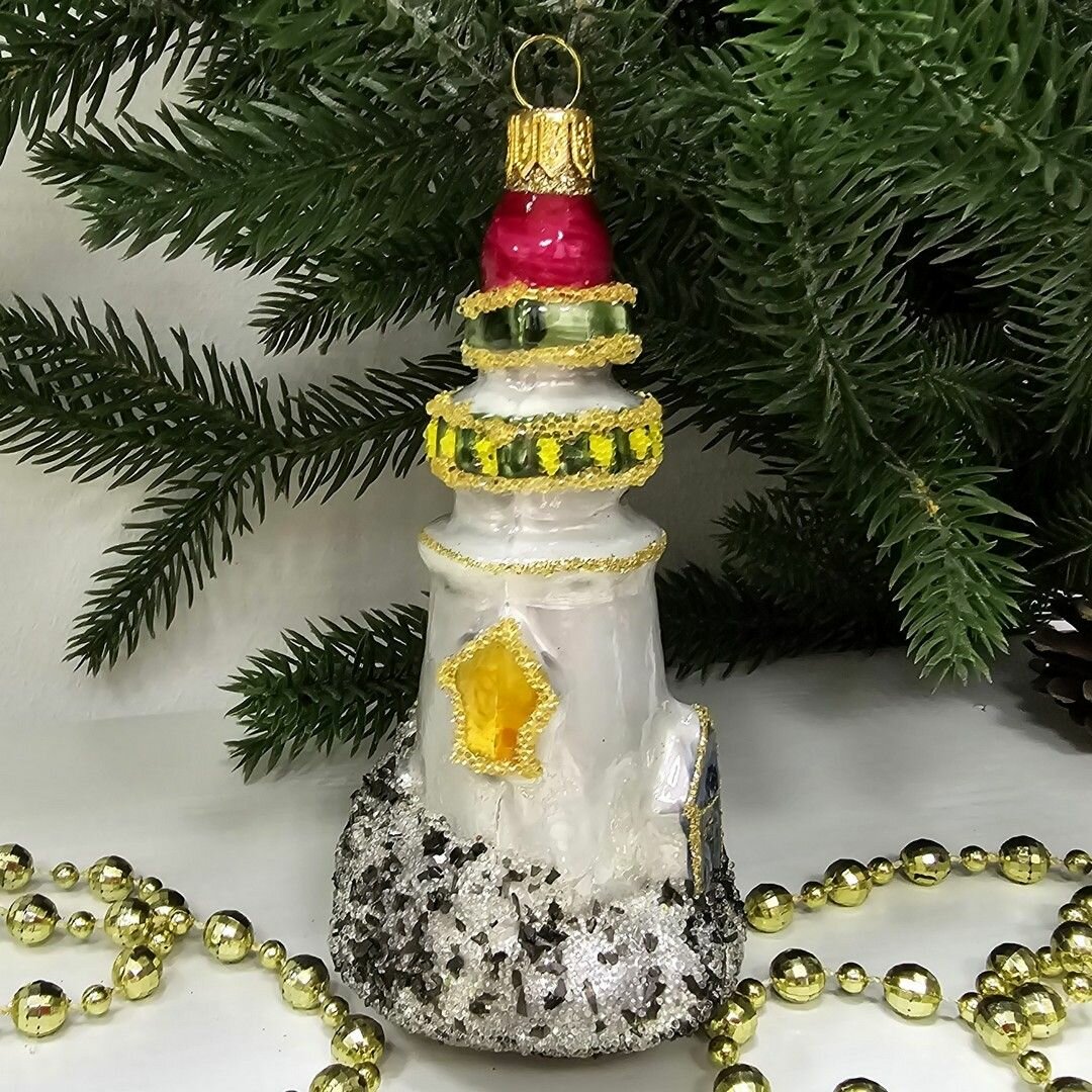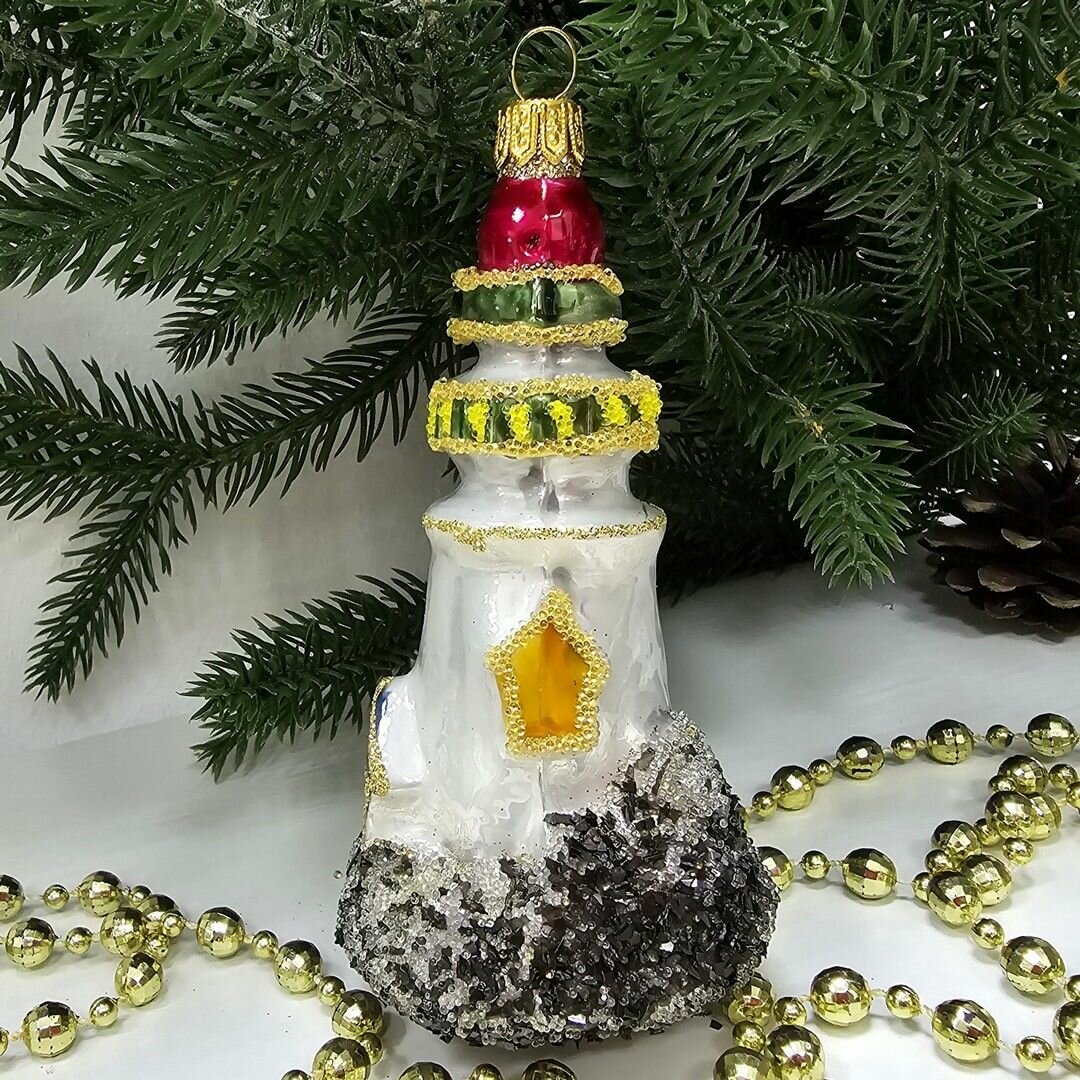 Irena-Co елочная игрушка, стекло Маяк (11,5х5,5х5см)