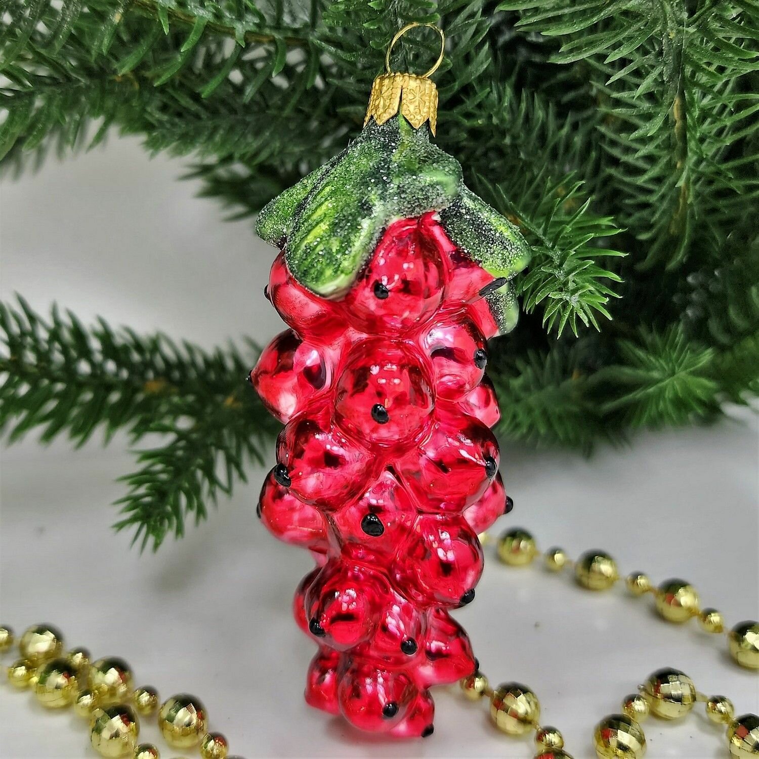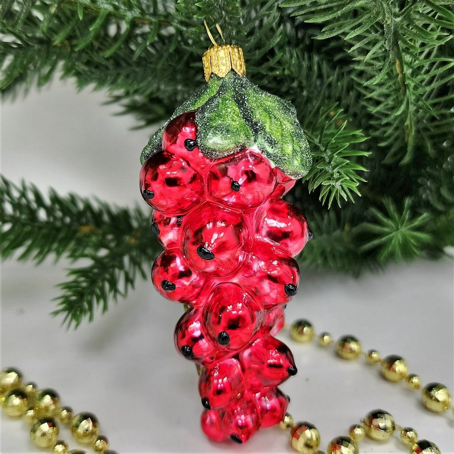 Irena-Co елочная игрушка, стекло Красная смородина (10х4х4см) интересное: