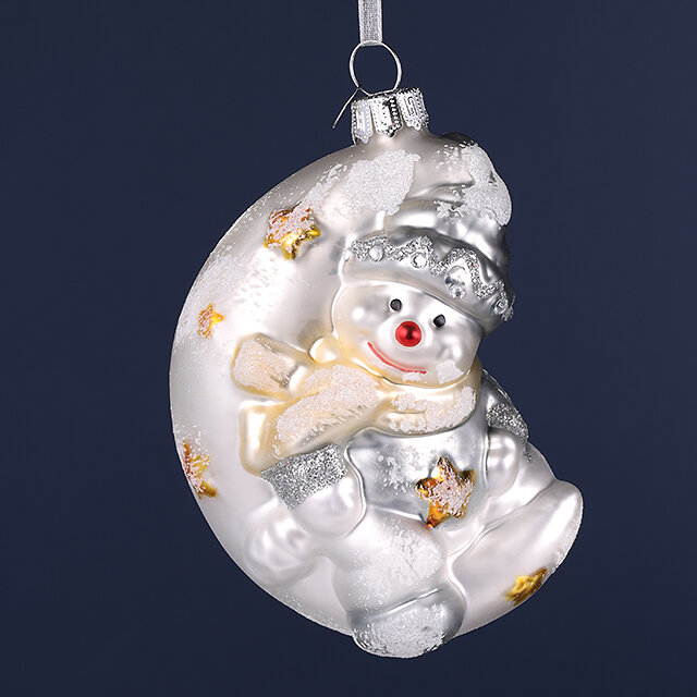 Купить Стеклянная елочная игрушка Снеговик Дон на полумесяце 11 см, подвеска