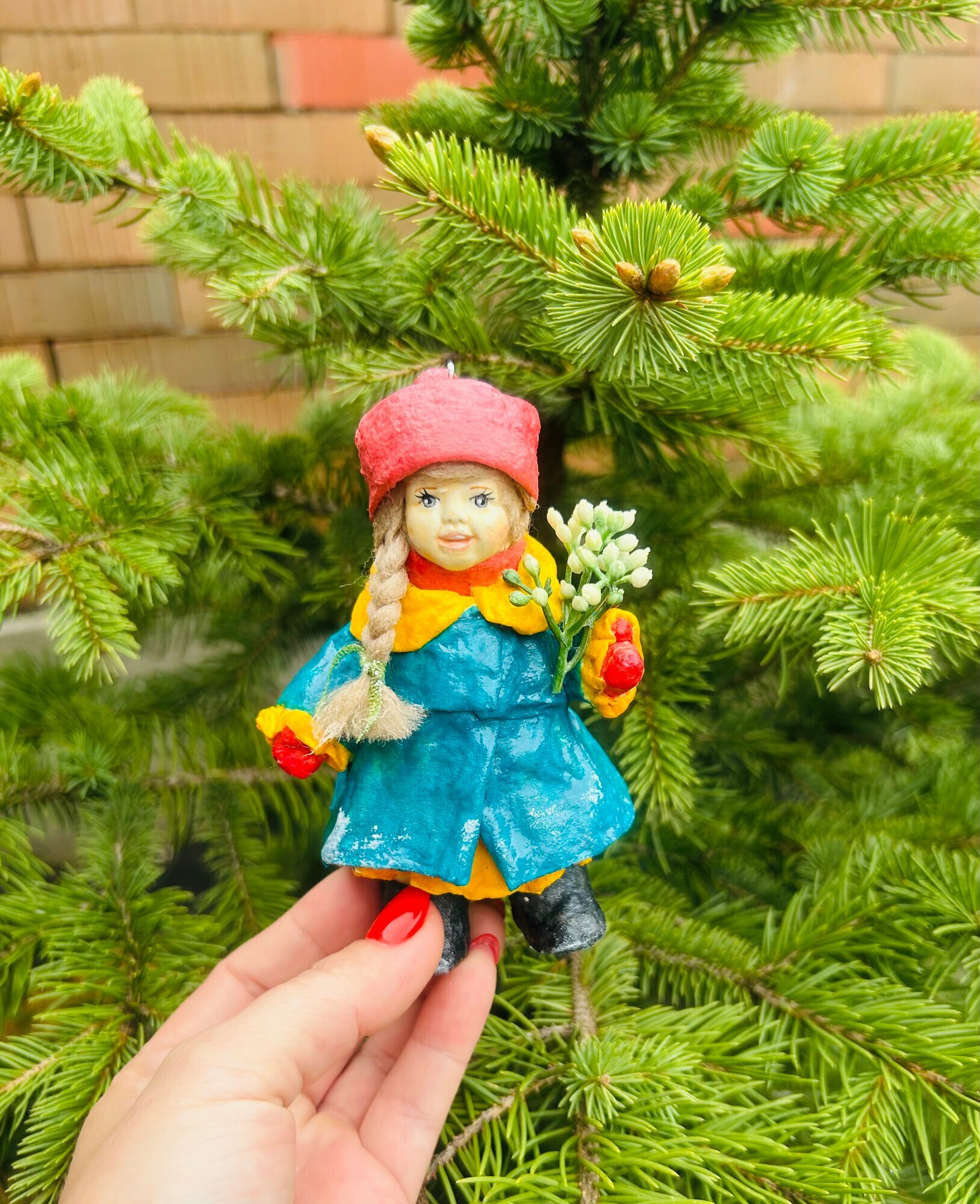 Купить Ватная елочная игрушка - девочка с цветами