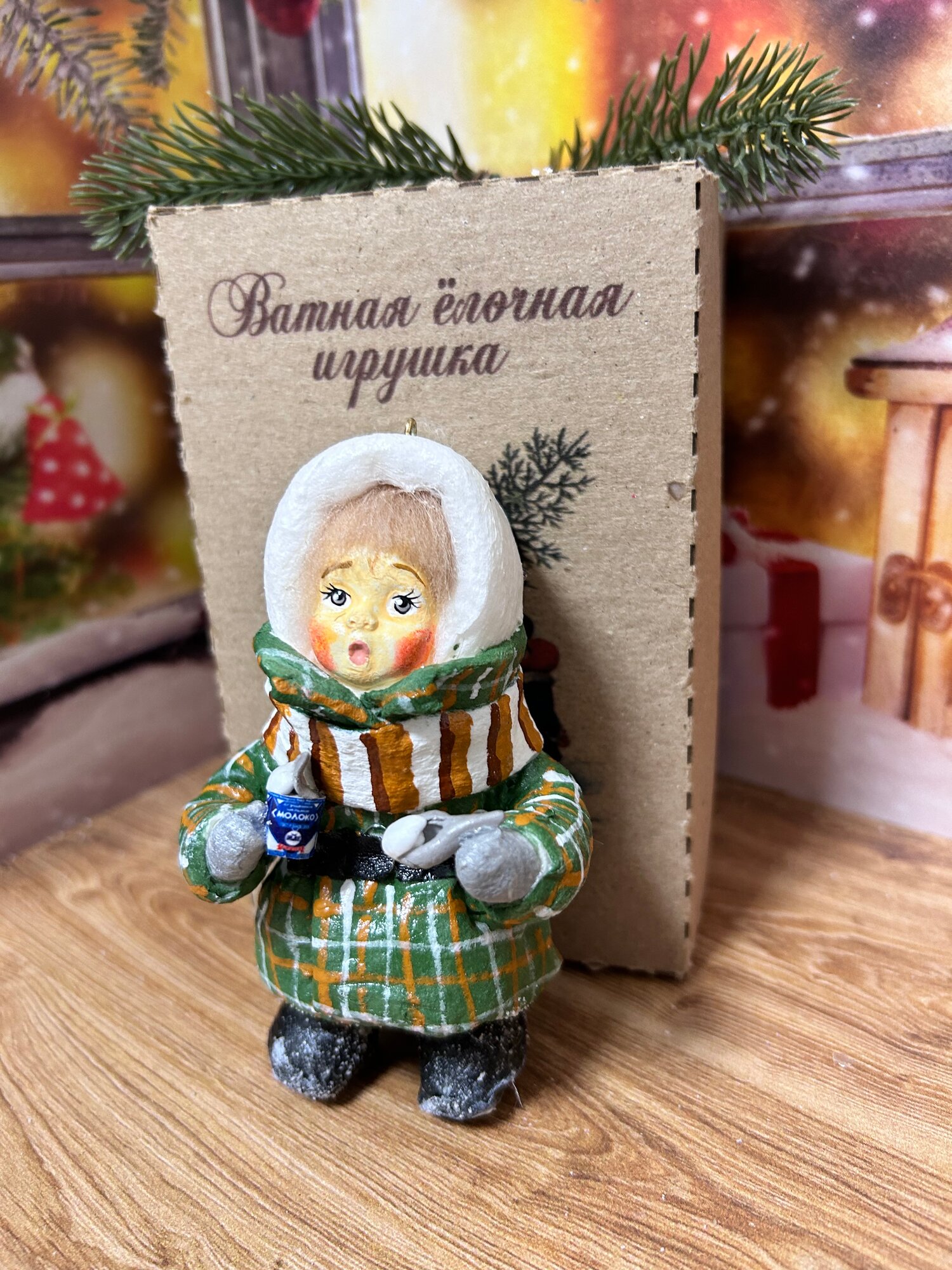 Купить Ватная елочная игрушка - малыш-сладкоежка