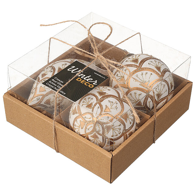 Купить Набор стеклянных шаров Ispirazione - Зимнее Кружево 8-13 см, 3 шт